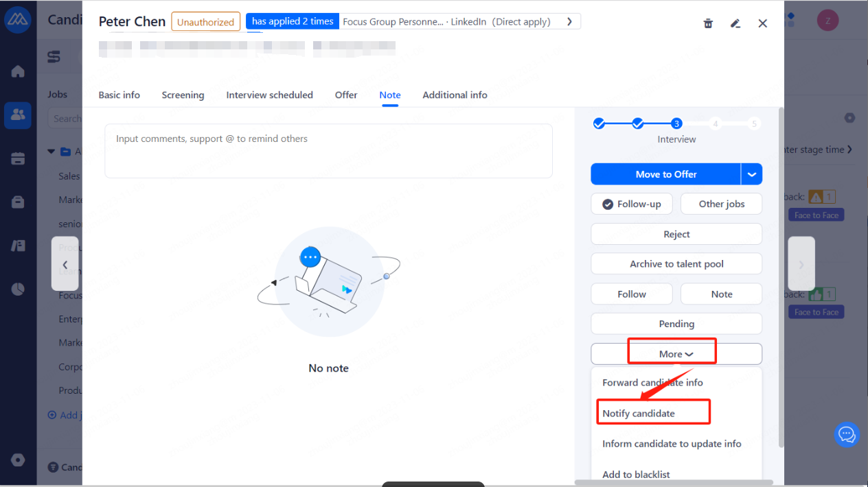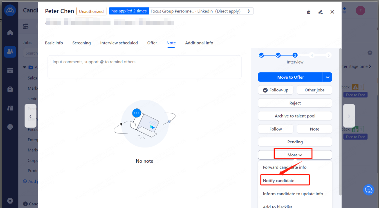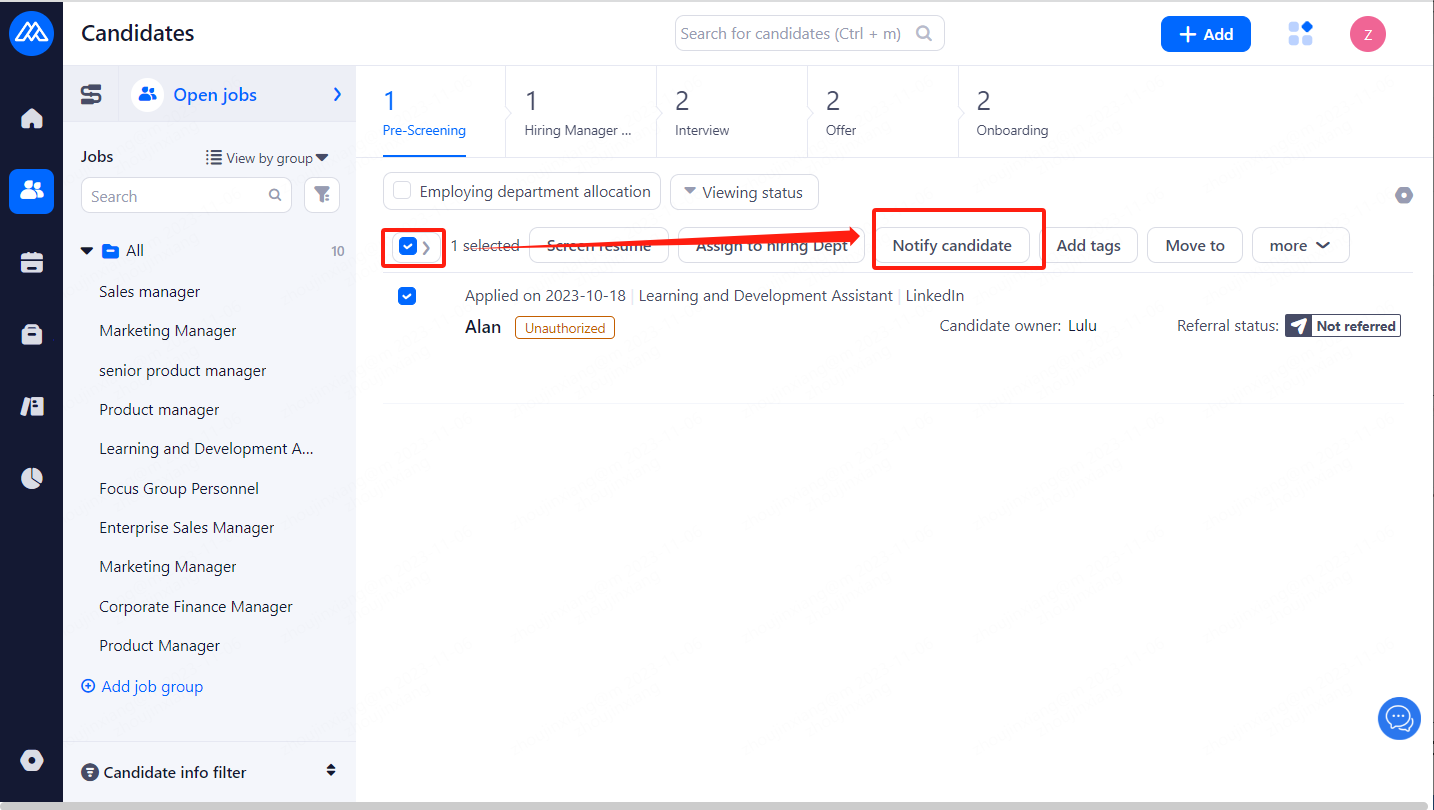2、Select [Notify candidate]