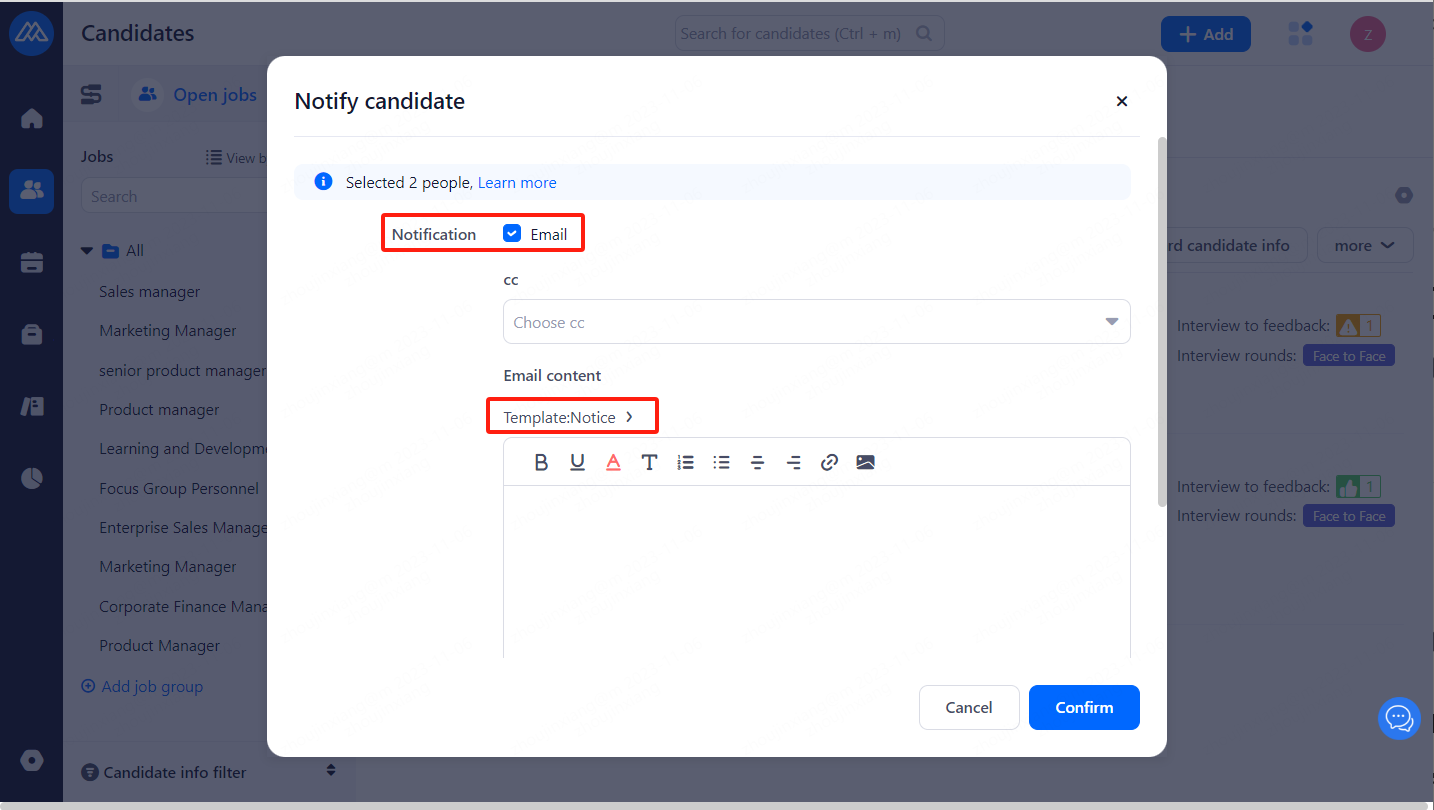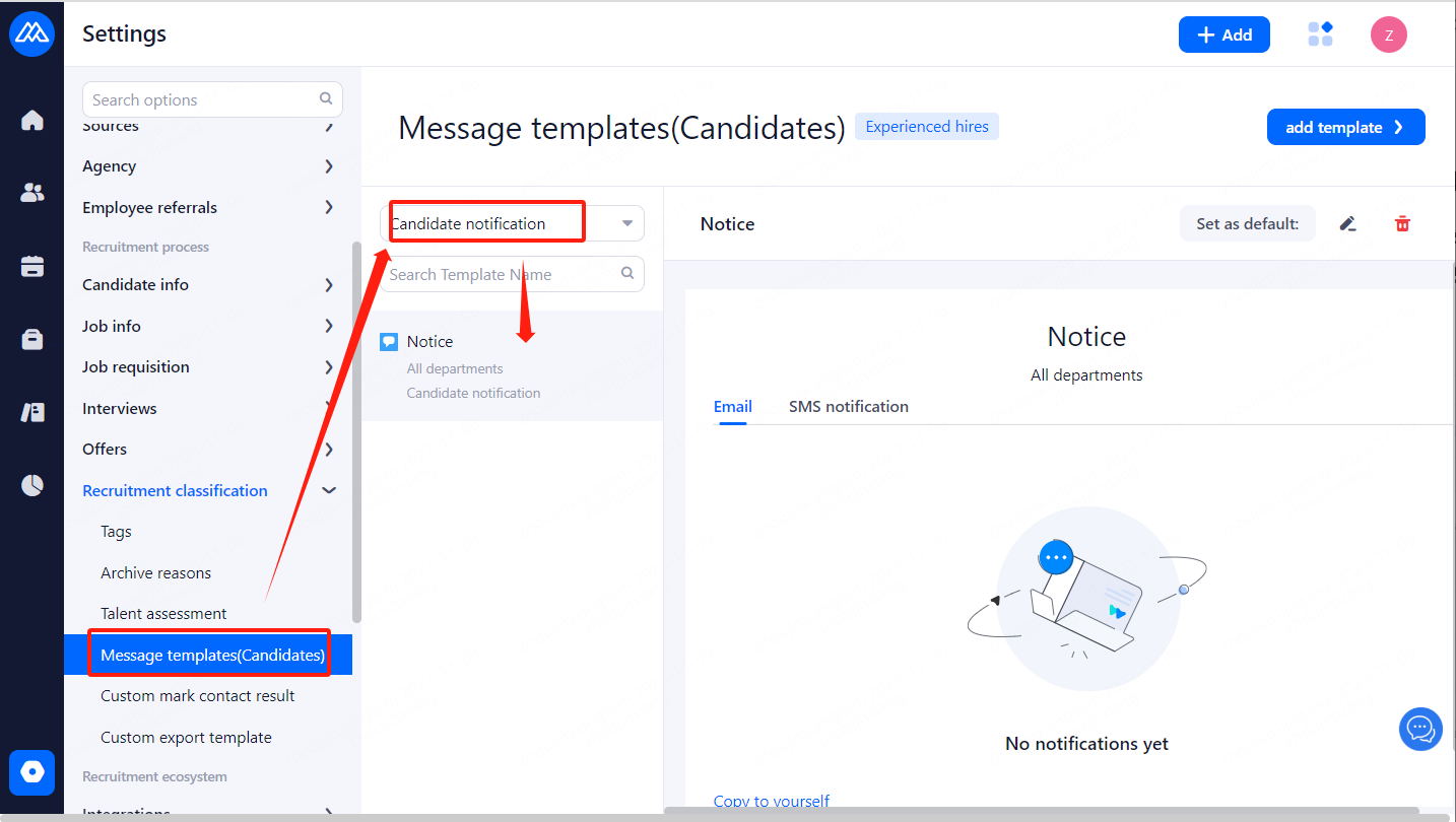 5、 [Notice Template] from [Message templates(Candidates)],[Candidate notification] in the edited template content]