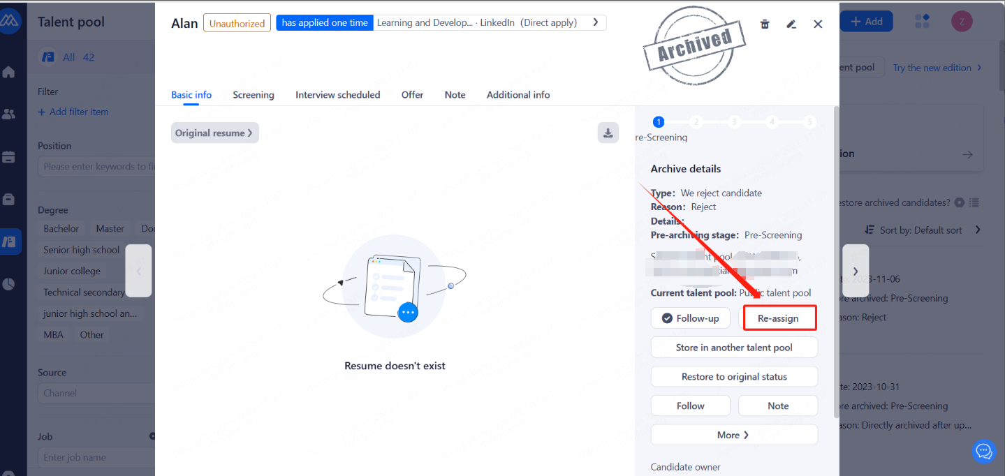 2.4 [Recommendations from the Talent Pool] --- "Re-assign"