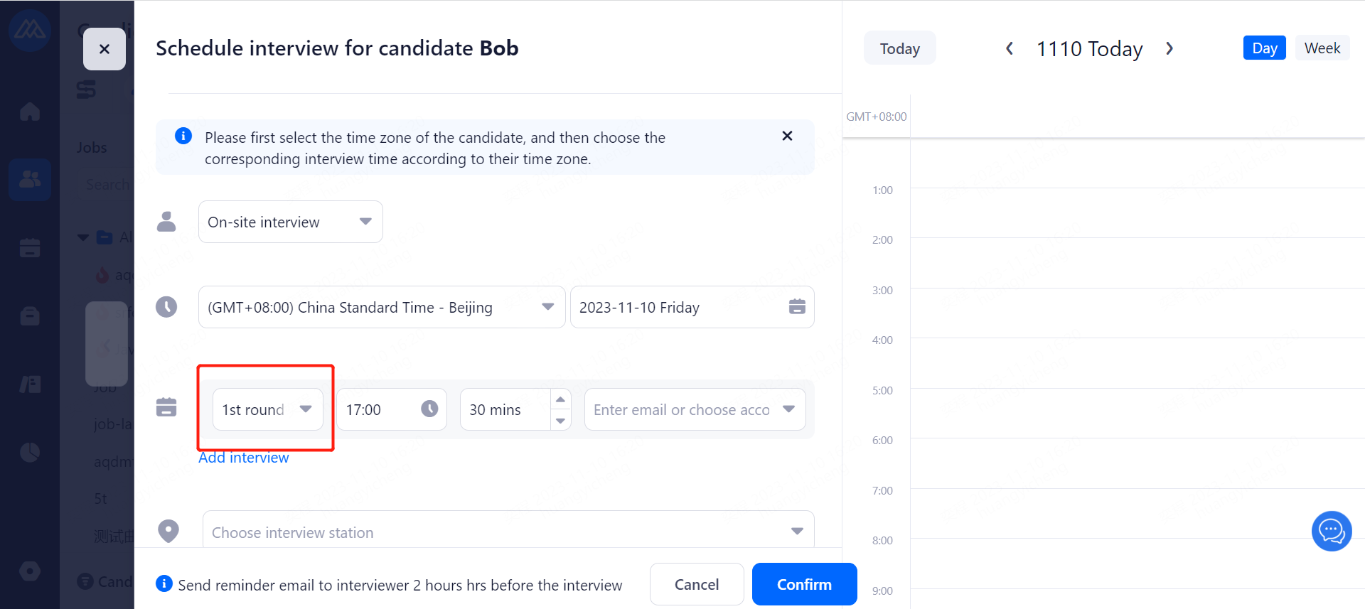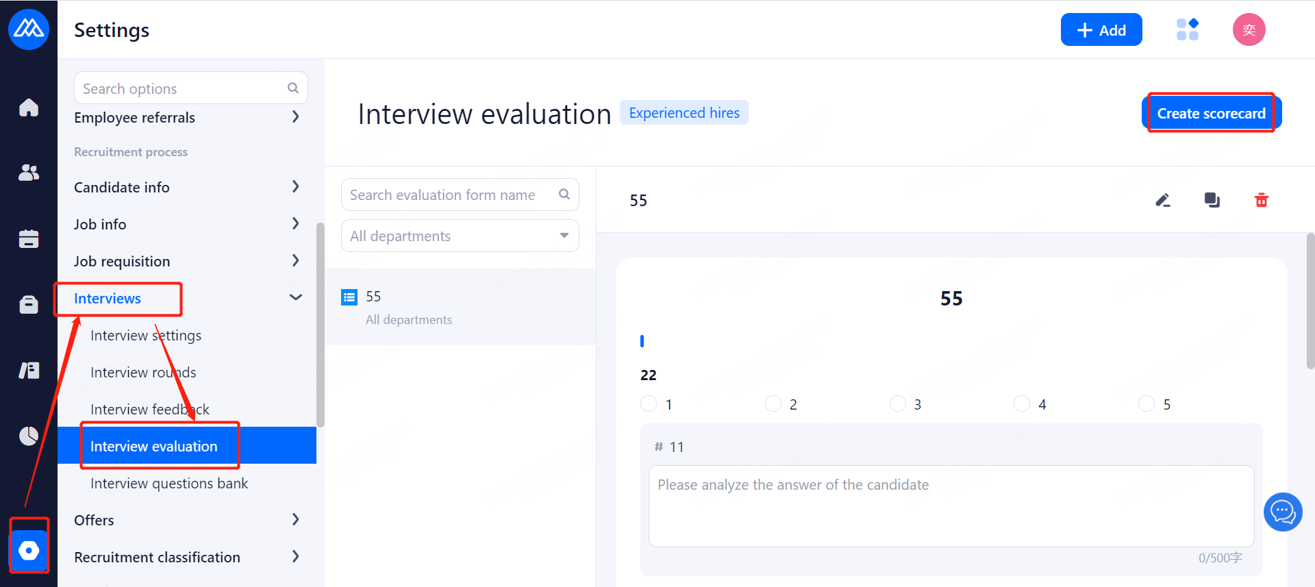 2. When posting a job, select the evaluation form that corresponds to the number of interview rounds under that job.