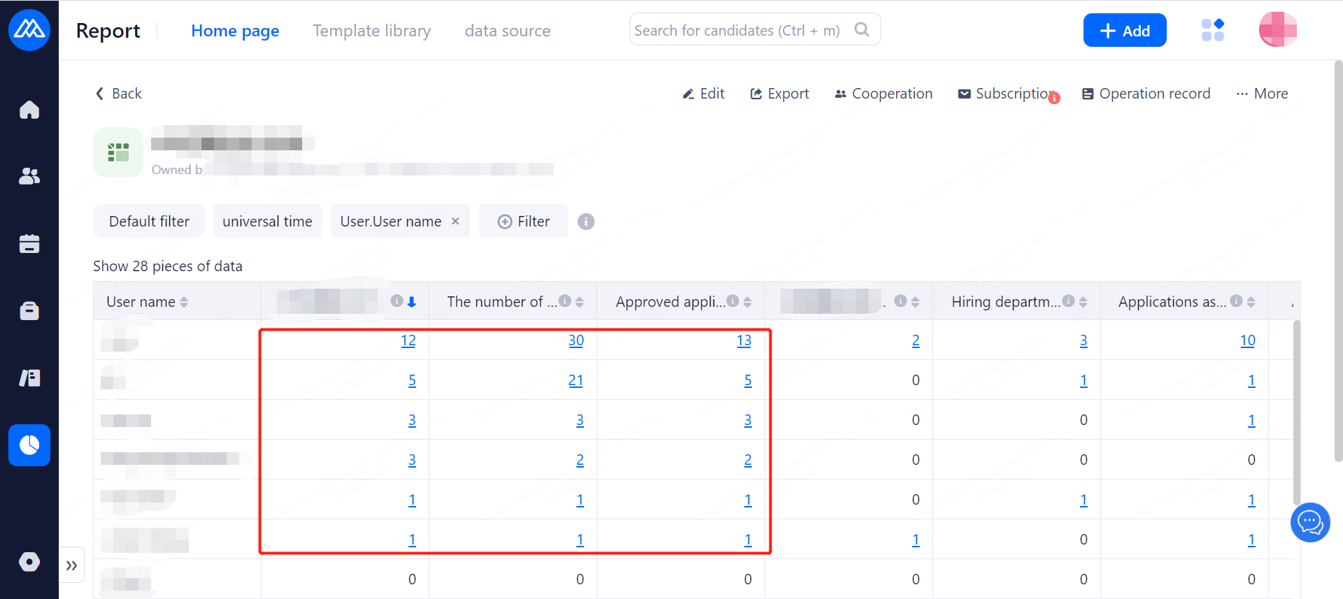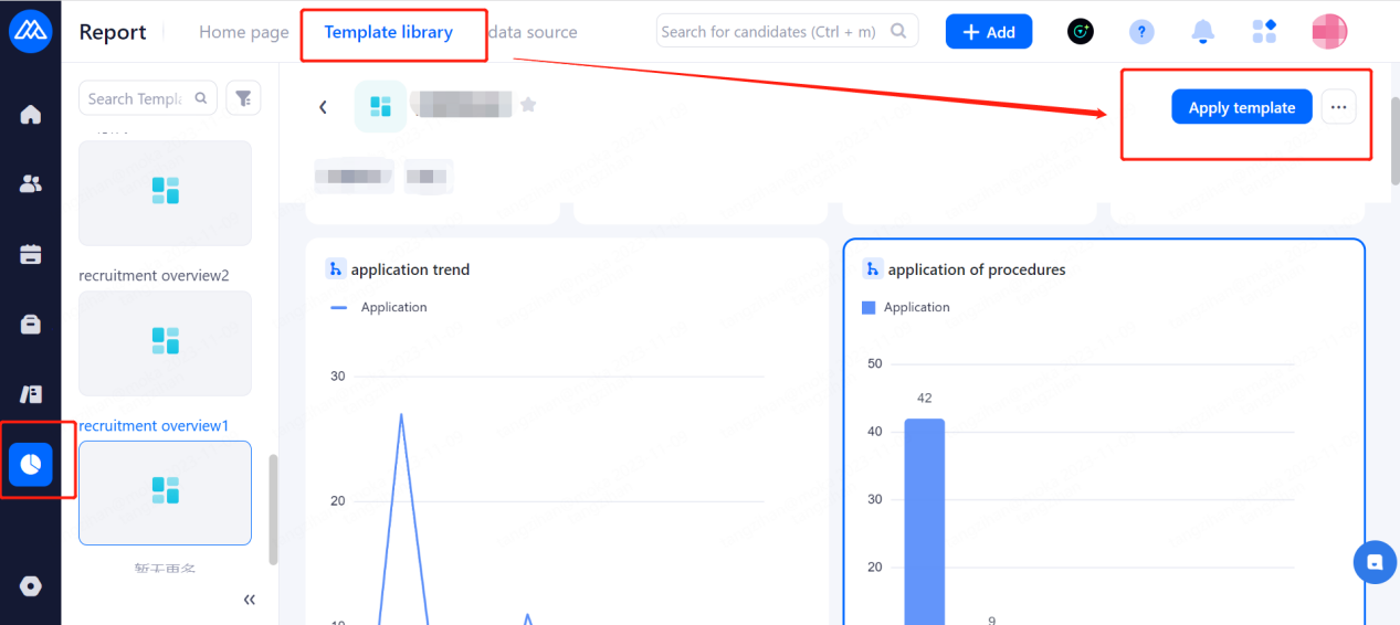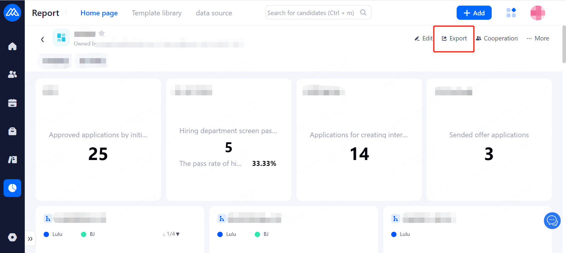 Template library: It provides a library of the most commonly used report templates that can meet various needs of most companies for HR, which includes recruitment progress, channel effectiveness, face-to-face interview analysis, on-boarding analysis, trend analysis, efficiency of the department, inward promotion statistics, etc.