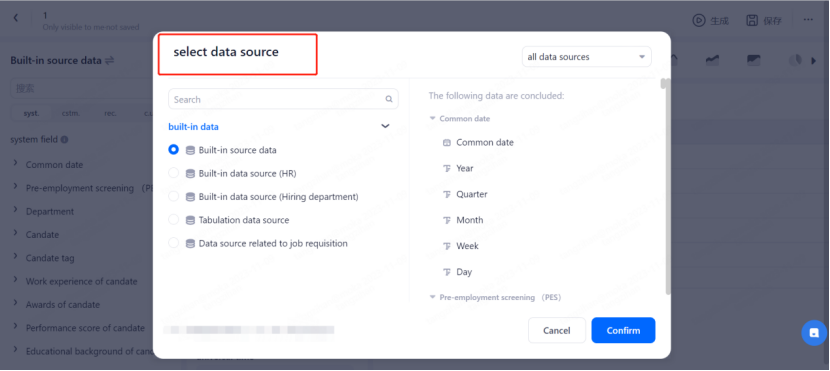 Report, built on data sources, is a concrete representation of the data. Reports only take effect when the data source is specified. With data sources switched, the custom fields and configurations in the report will not be available.