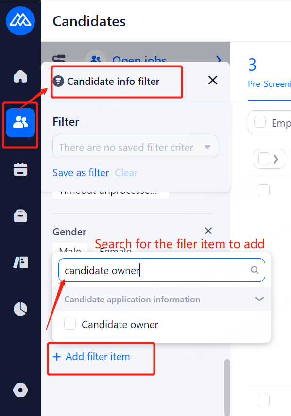 Filtrate of candidate owners is supported in Candidates and Talent Pool.