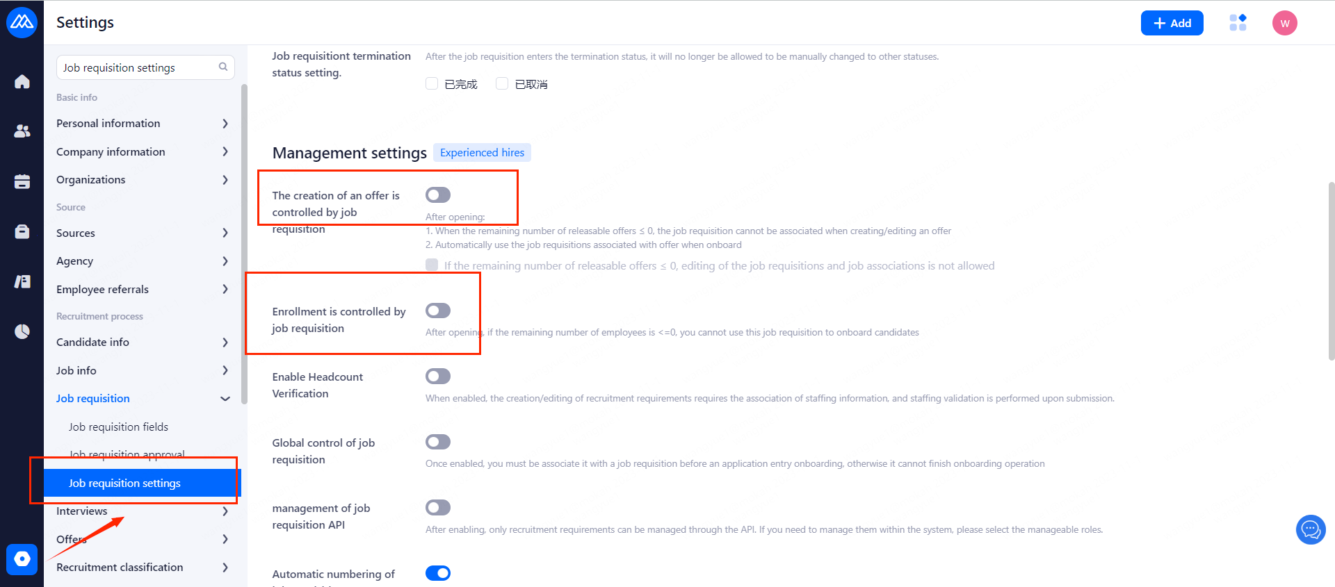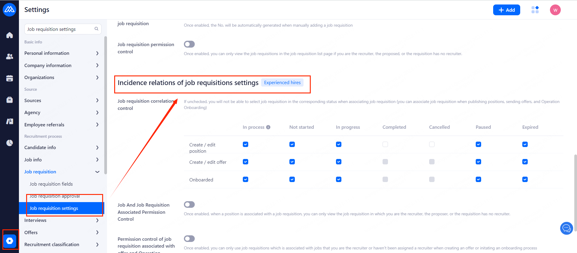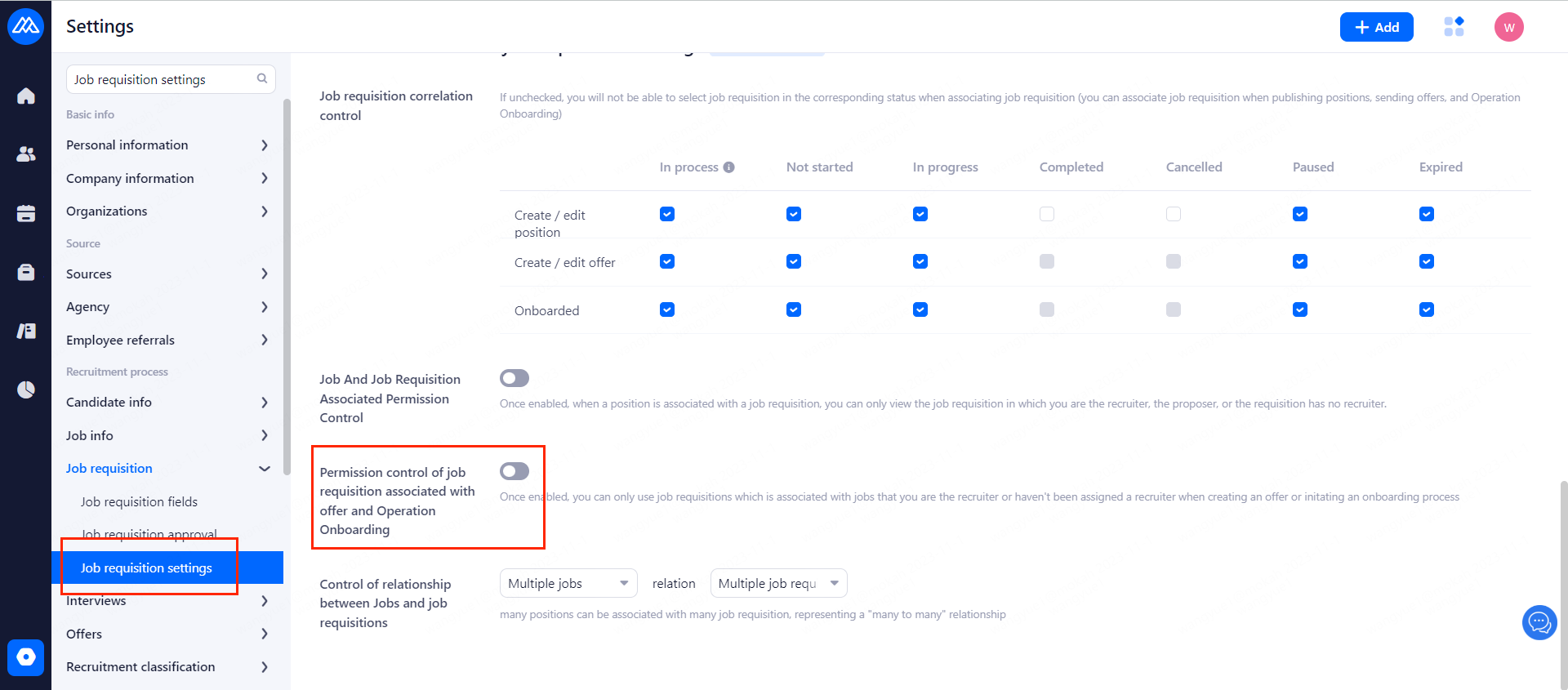 The job requisitions settings can control the permissions of job requisitions related to positions, offers and onboarding.