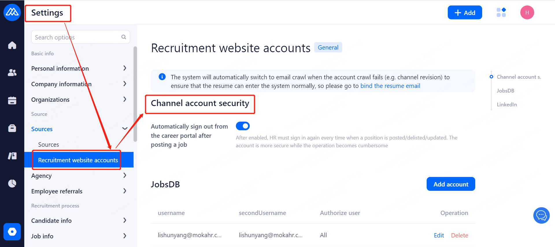 Tip: After enabling this feature, every time you post a job, HR must log in again to the channel website, the account is more secure, but the operation also becomes cumbersome.