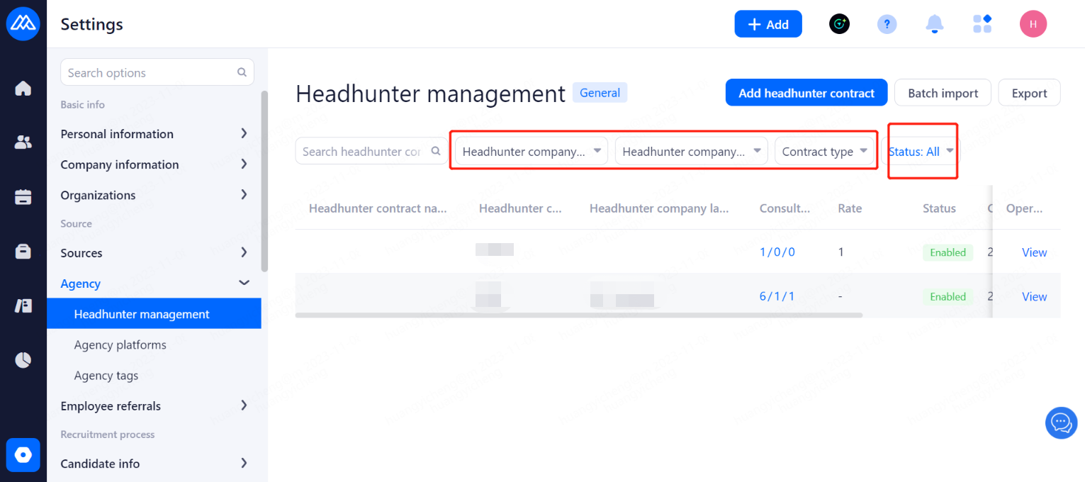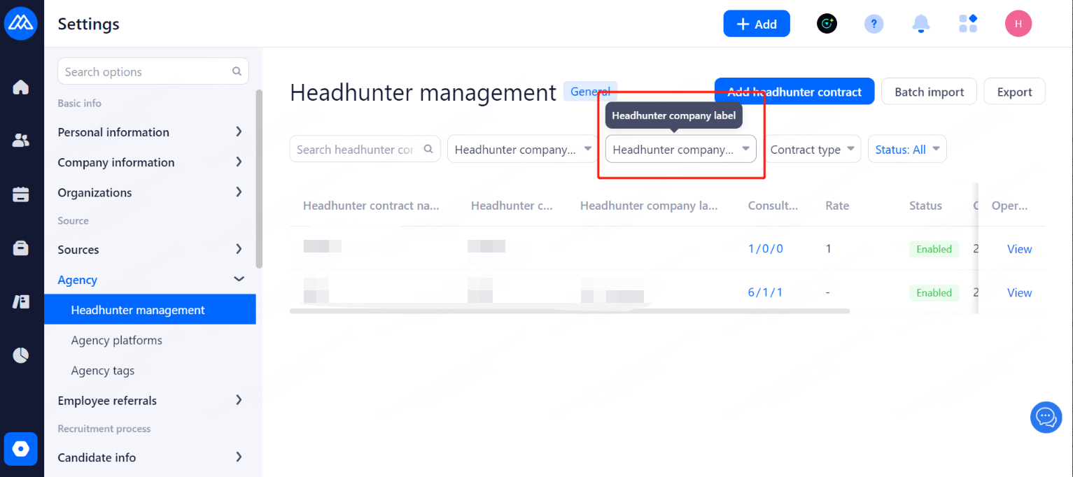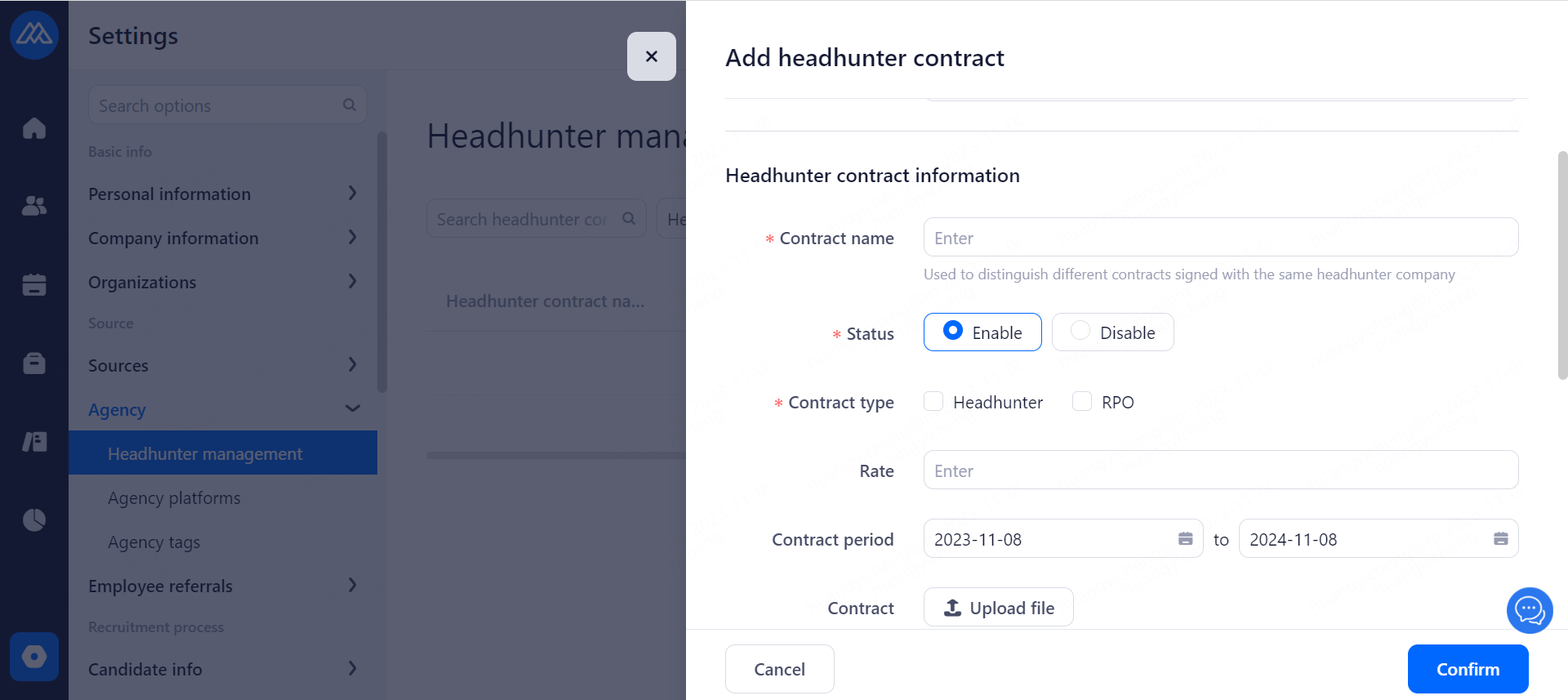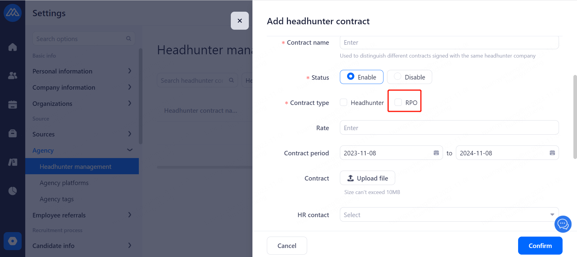Set the agreement that headhunters need to confirm when recommending candidate