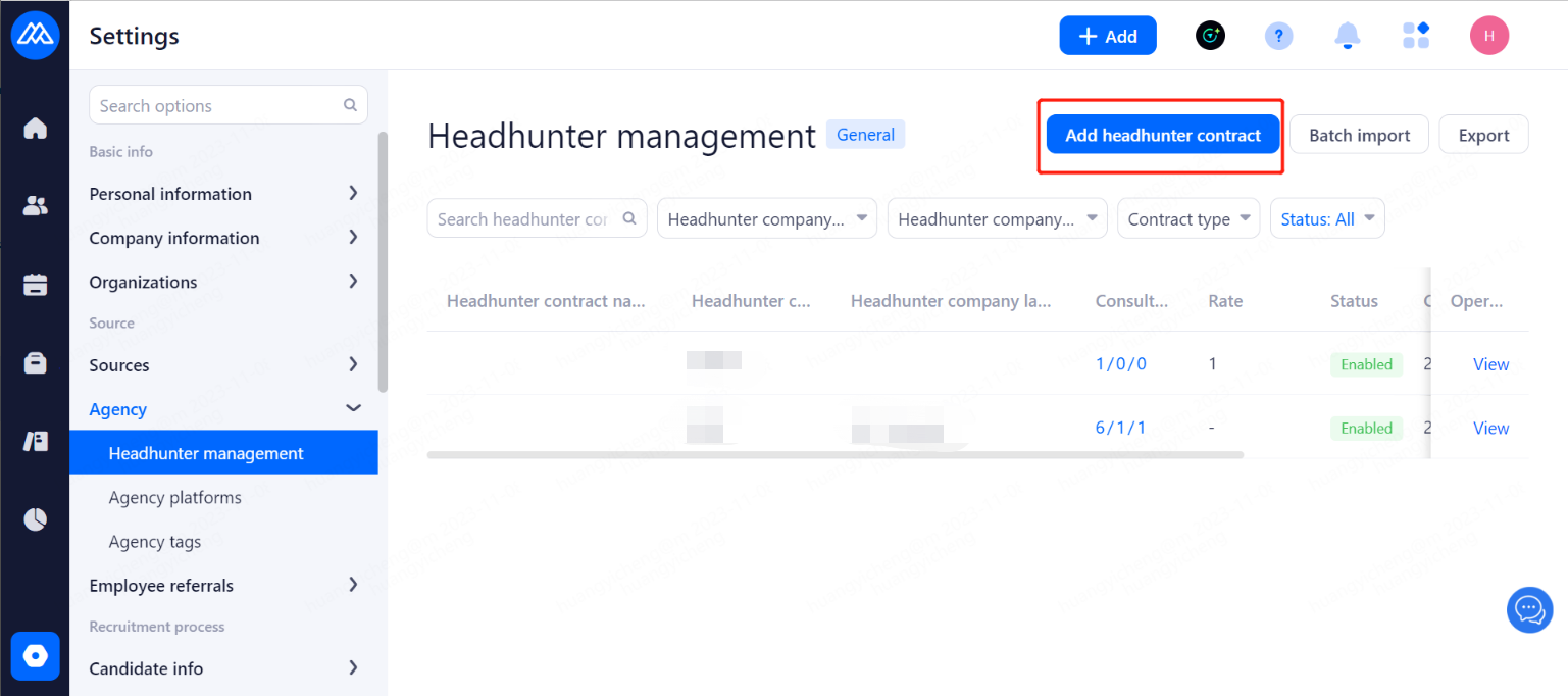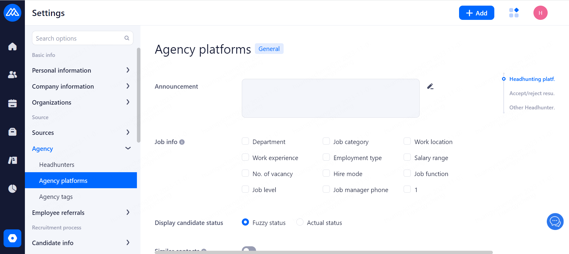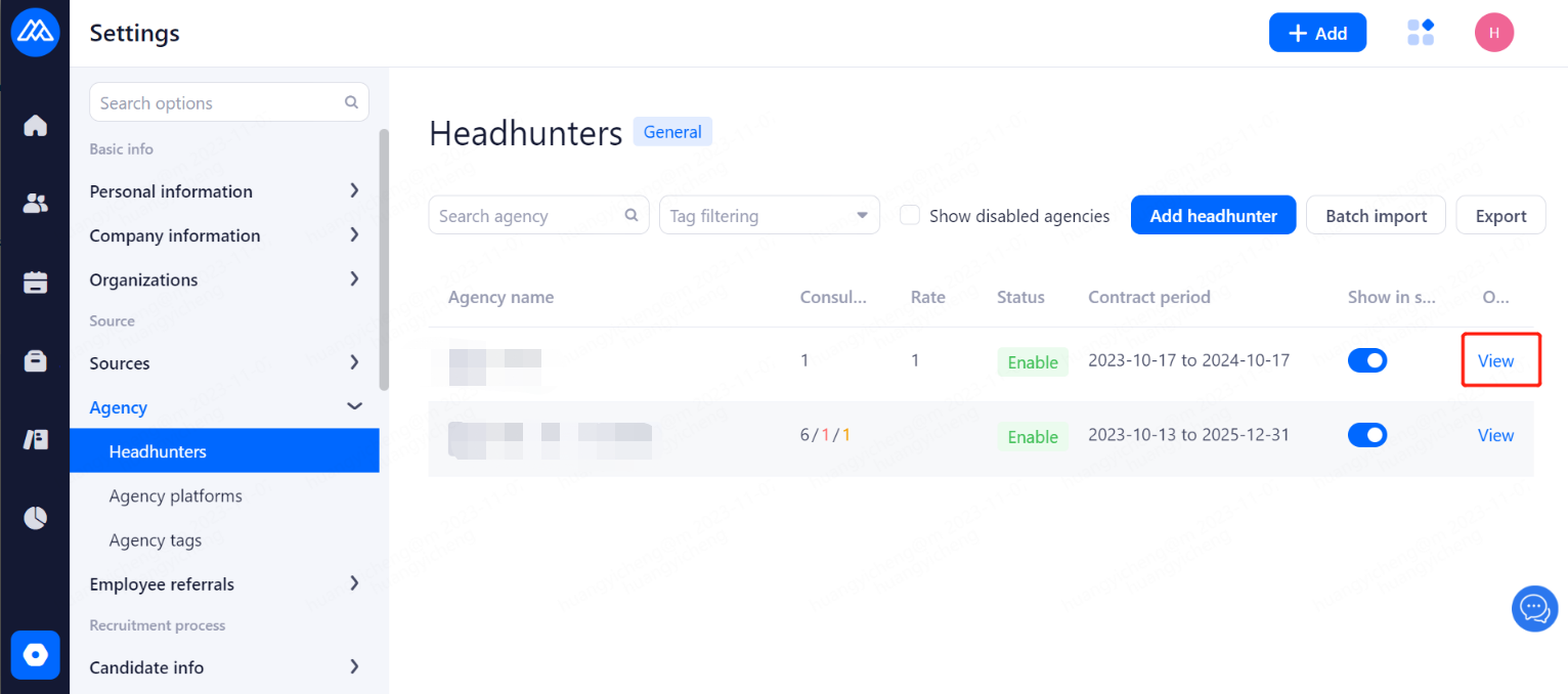 Set the agreement that headhunters need to confirm when recommending candidate