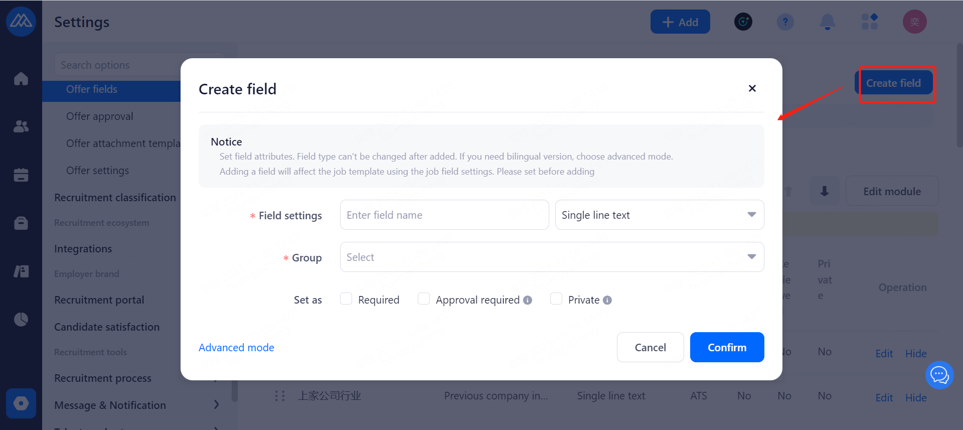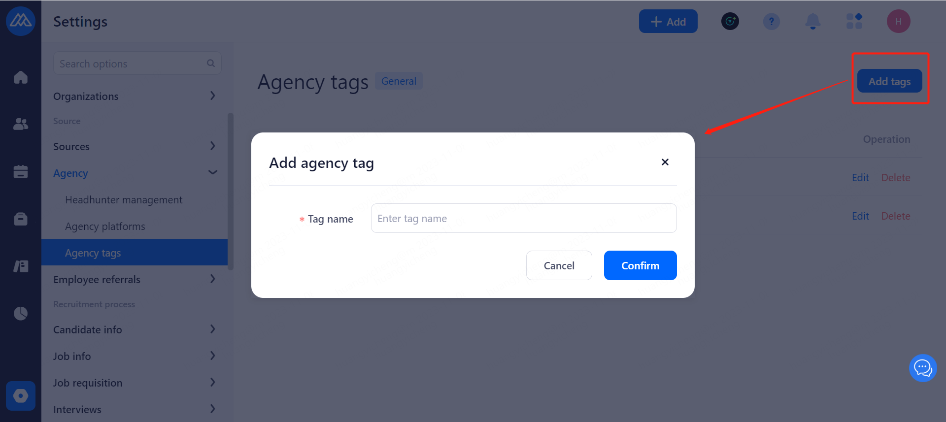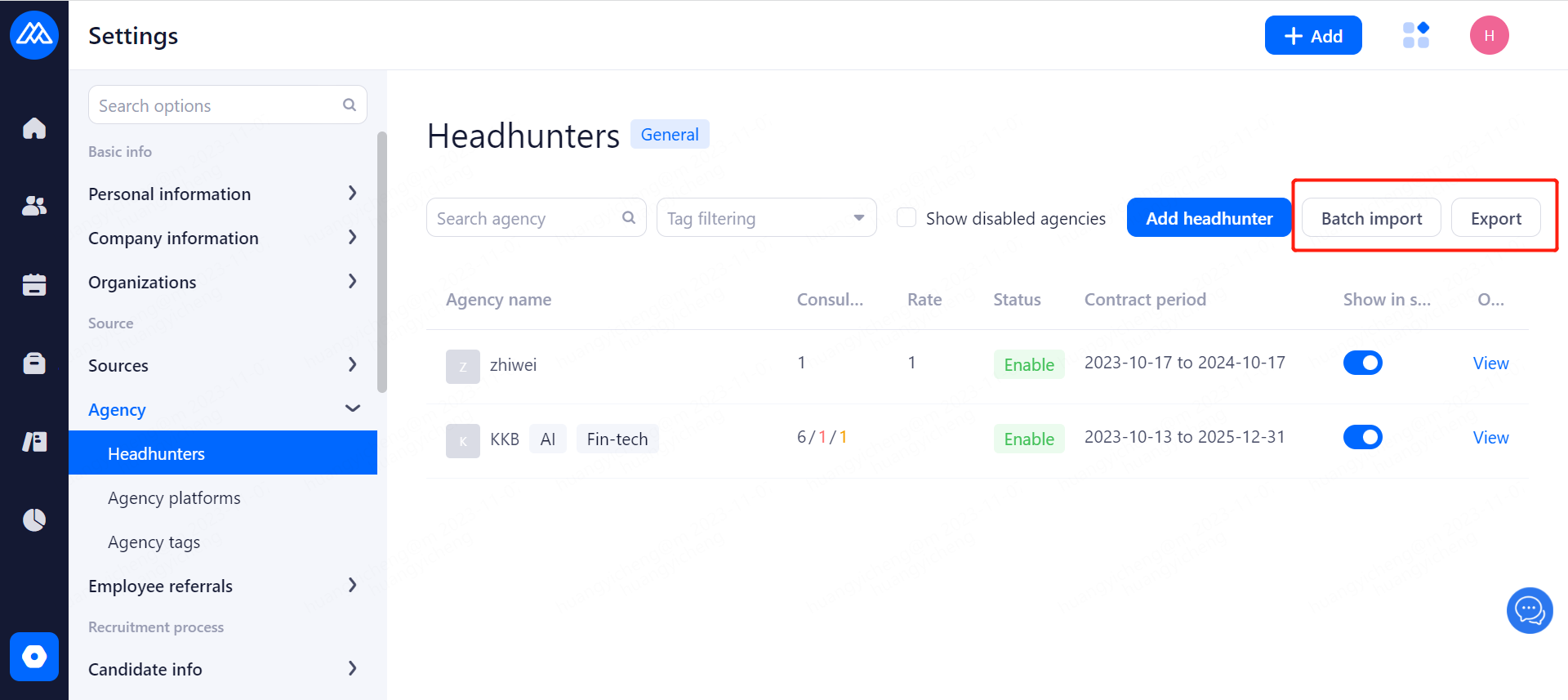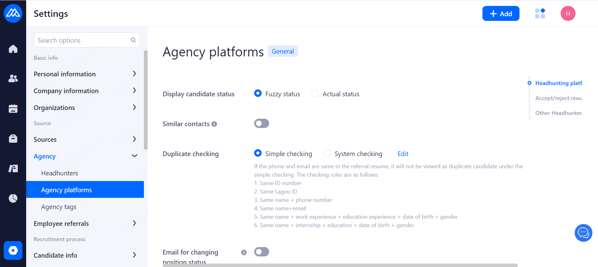 Set the agreement that headhunters need to confirm when recommending candidate