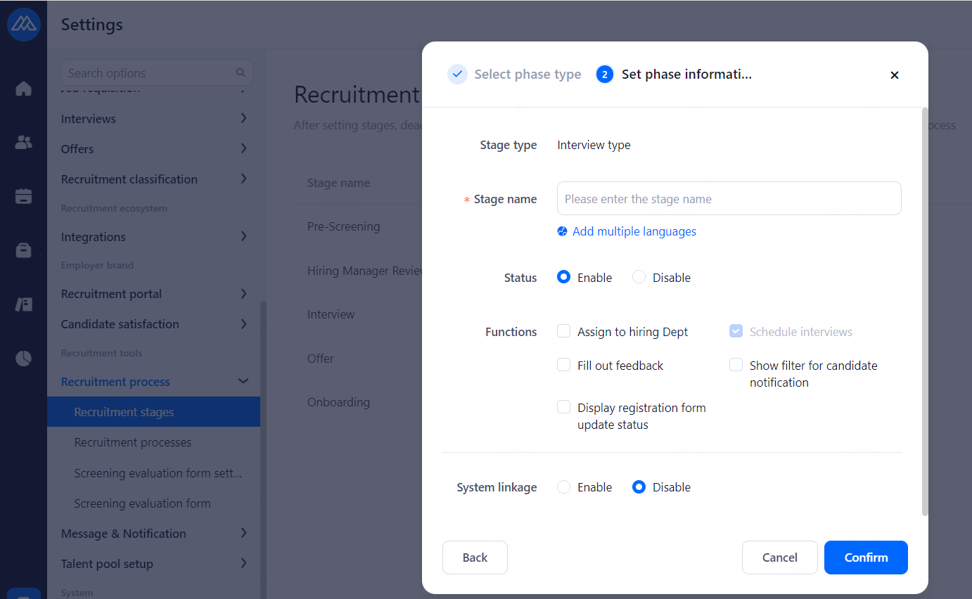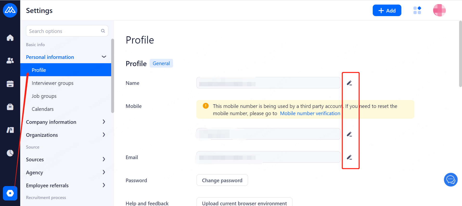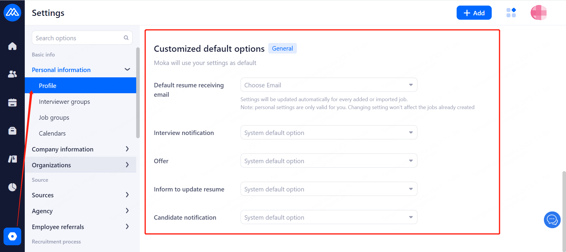 For companies who newly open Moka, the first super admin needs to complete personal information first when he/she enters the system for the first time, including basic information and binding the email adress for receiving resumes.