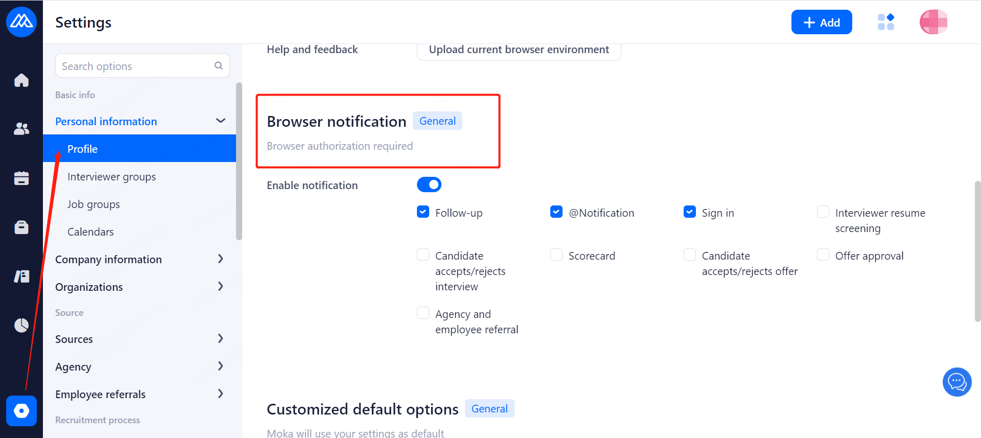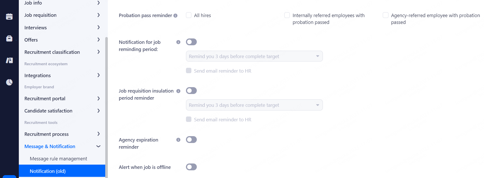 Browser notification: Set the notification reminder on the web page during the whole recruitment process. After the corresponding functions are checked, the notification reminder is triggered and made through the browser you logged in.