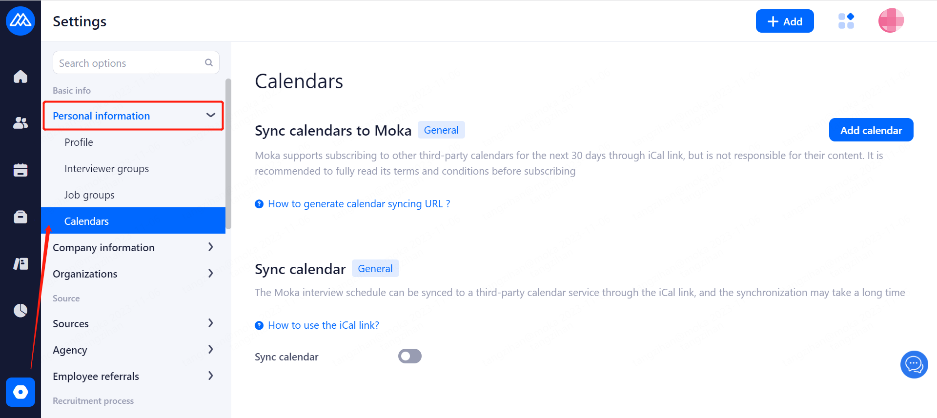 Sync calendars to Moka: Add your personal schedule to the Moka system for consolidation through other schedule management tools via their iCal links to manage your work and life more efficiently.