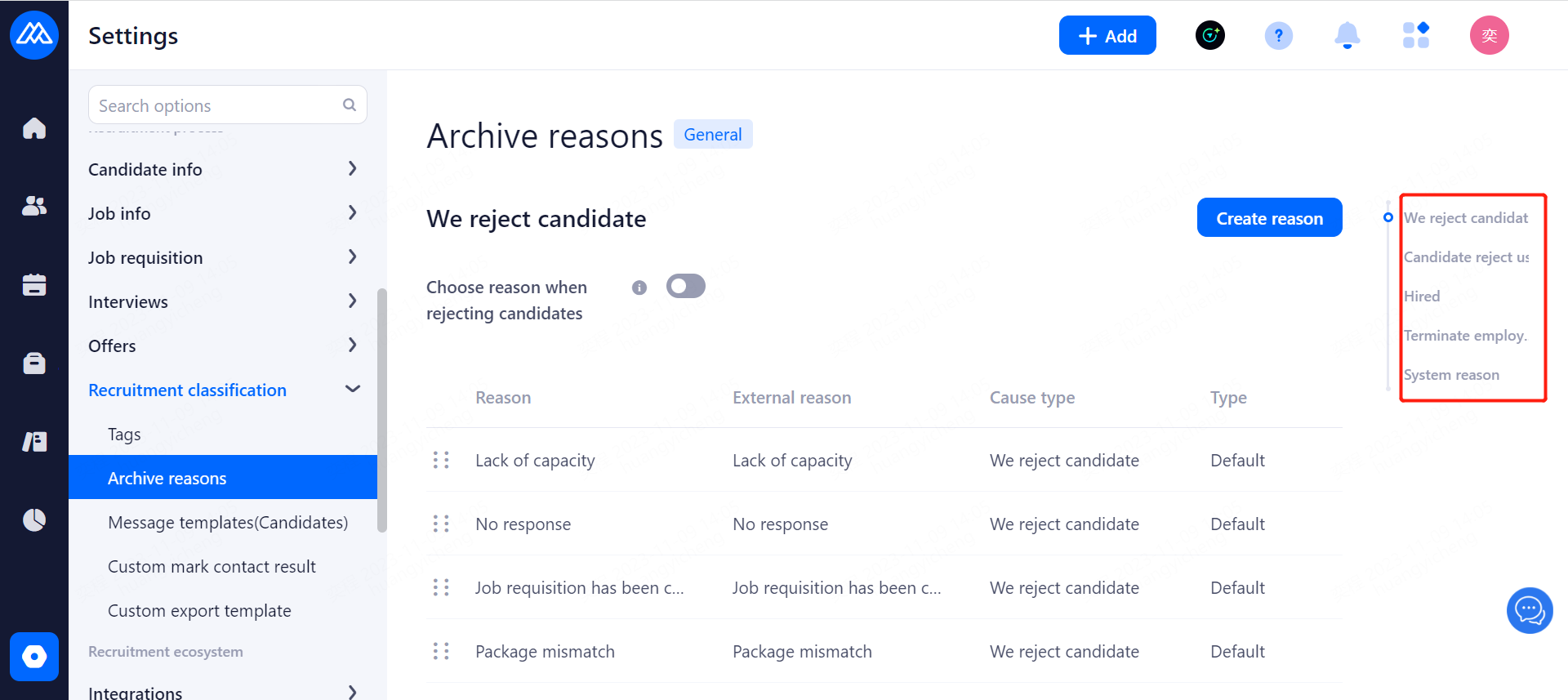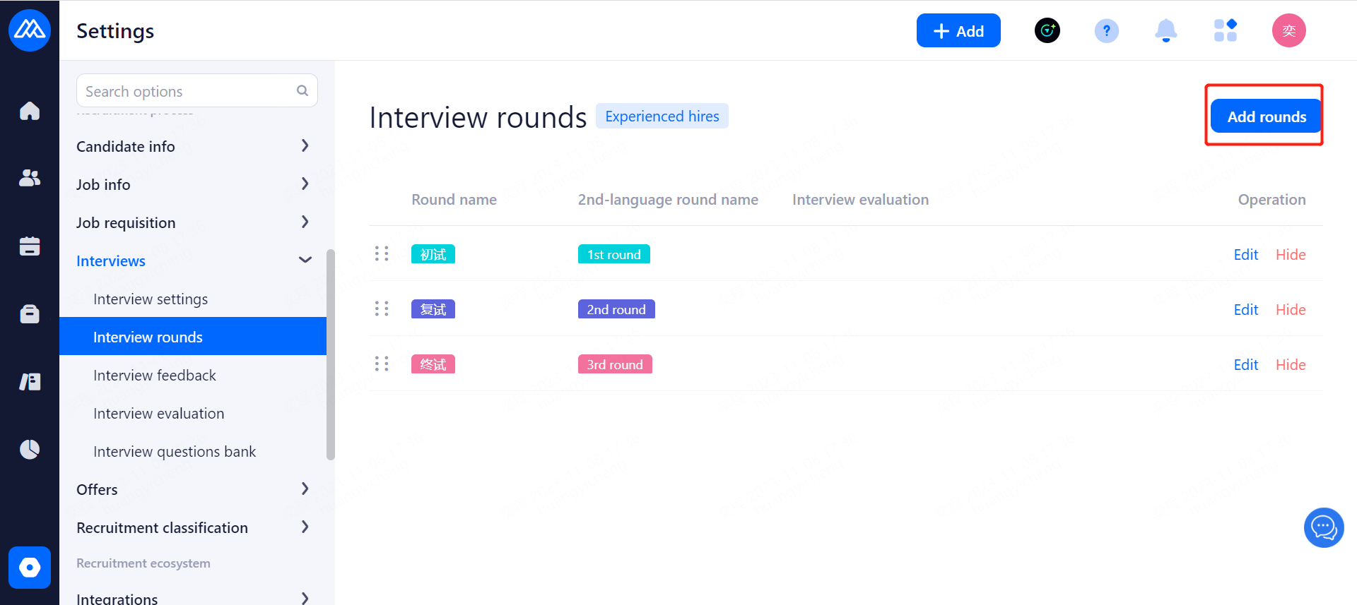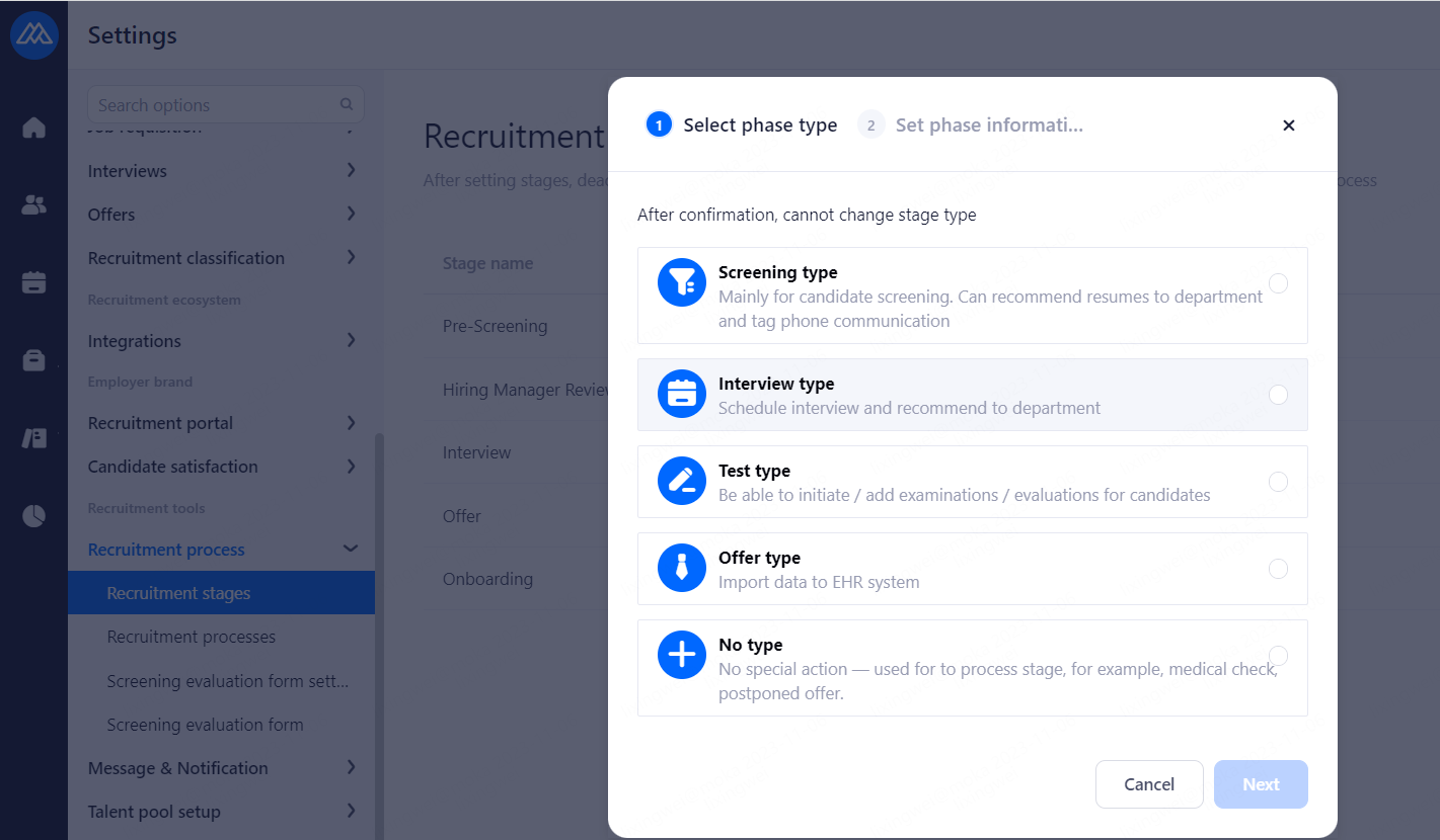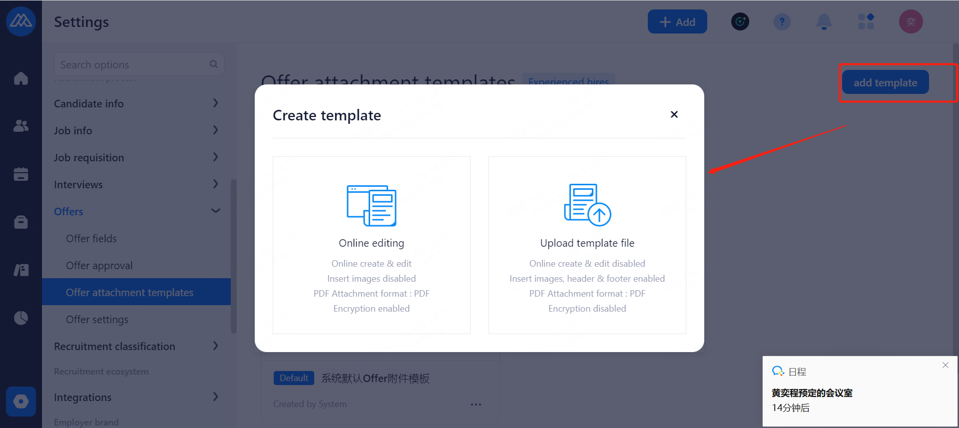 Reminders are sent to candidates before the interview. Email and SMS reminders are available, and SMS reminders need to be purchased in advance. Notification time: 2 hours before the interview, 1 day before the interview, 2 days before the interview and 3 days before the interview.