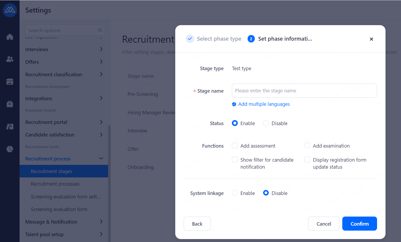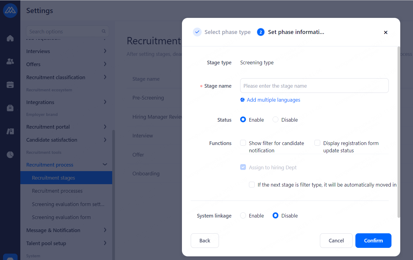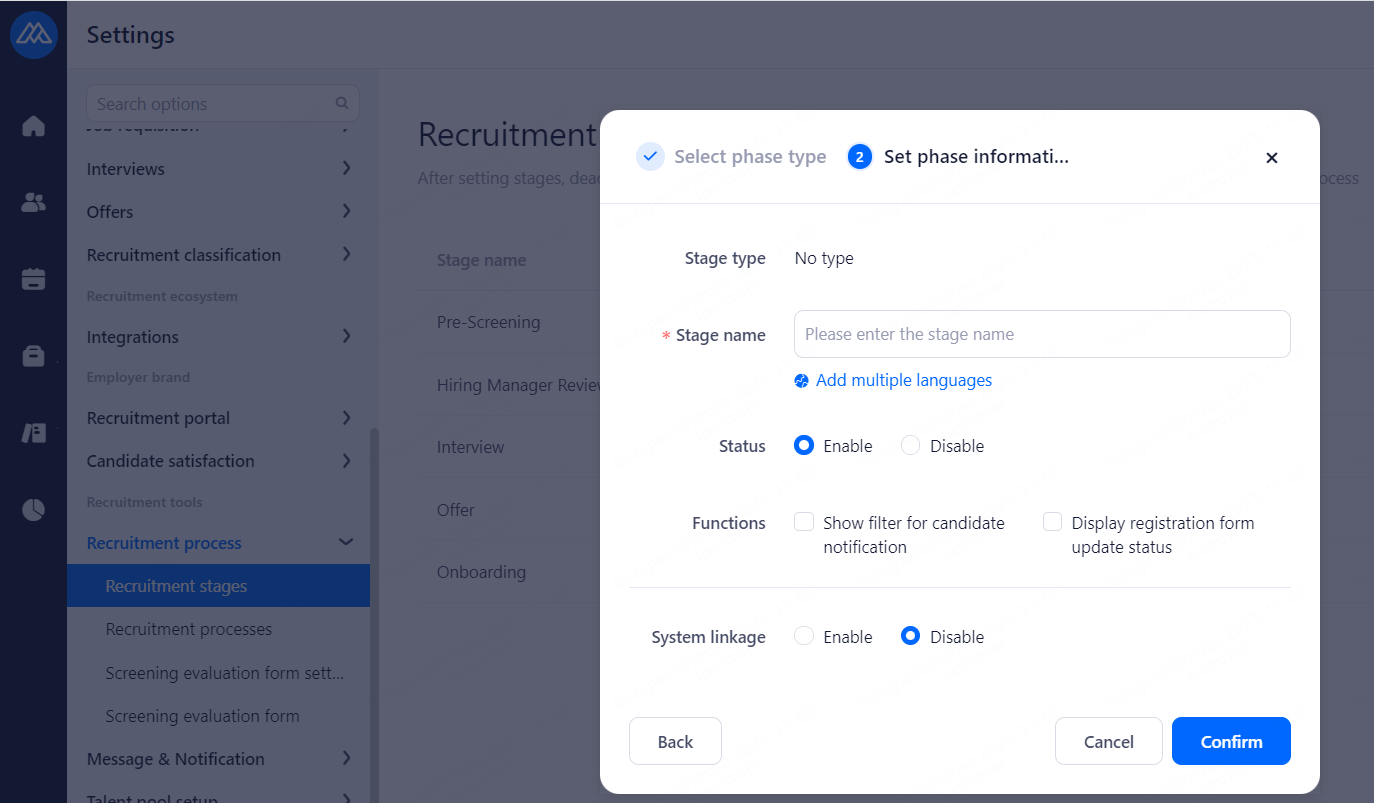 WeChat/Ding Talk/lark: Notify HR via WeChat、DingTalk and Lark when processing candidates status changed. Enable the service to use otherwise use email.