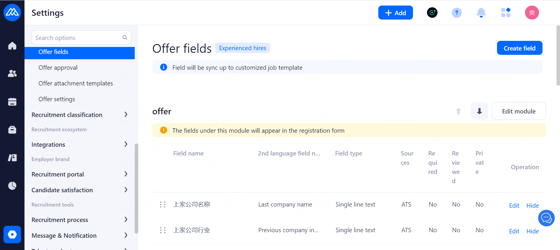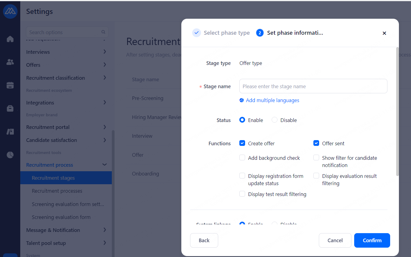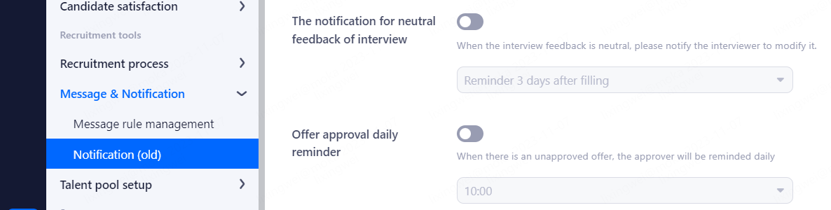 Notification for offer reminding period: Enable the warning period in the dashboard, Notify HR to contact candidates at a specific time for the sent offer. Notification time: