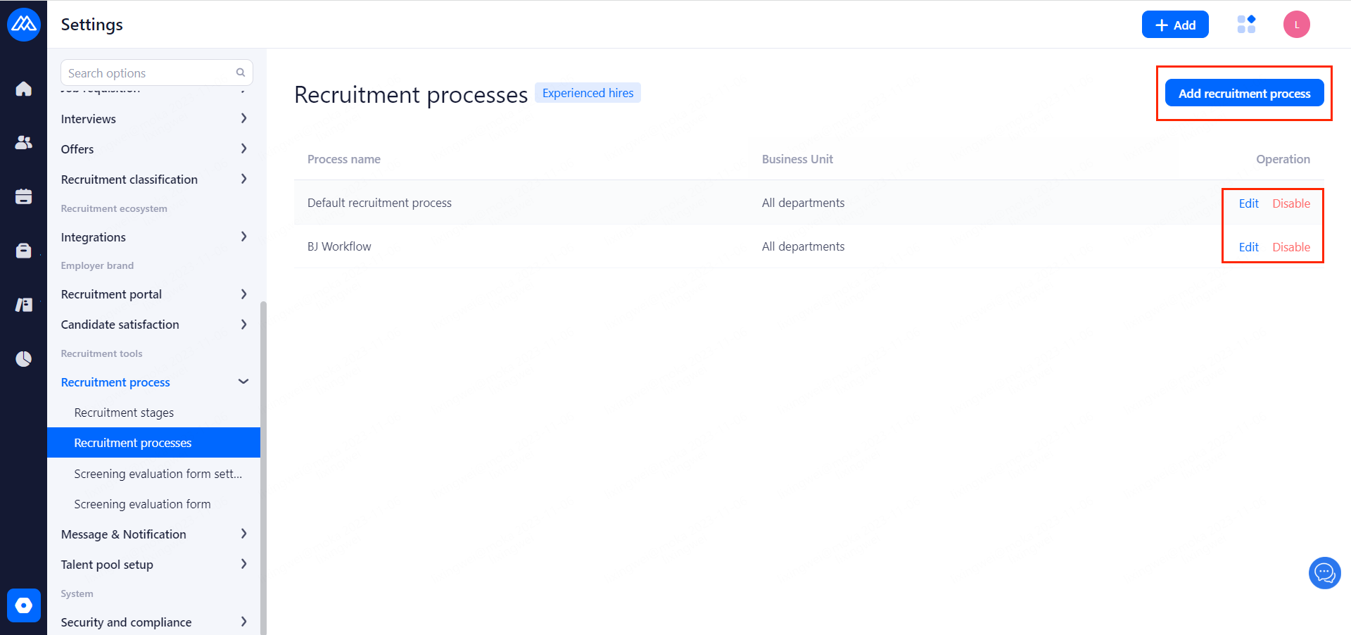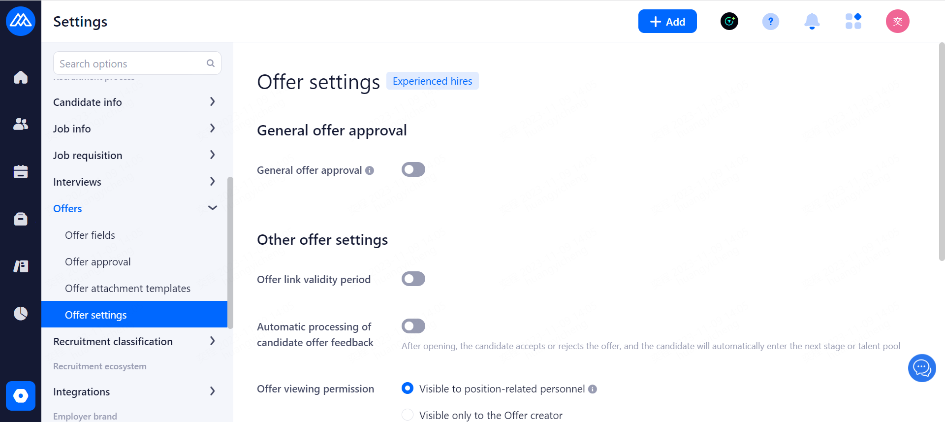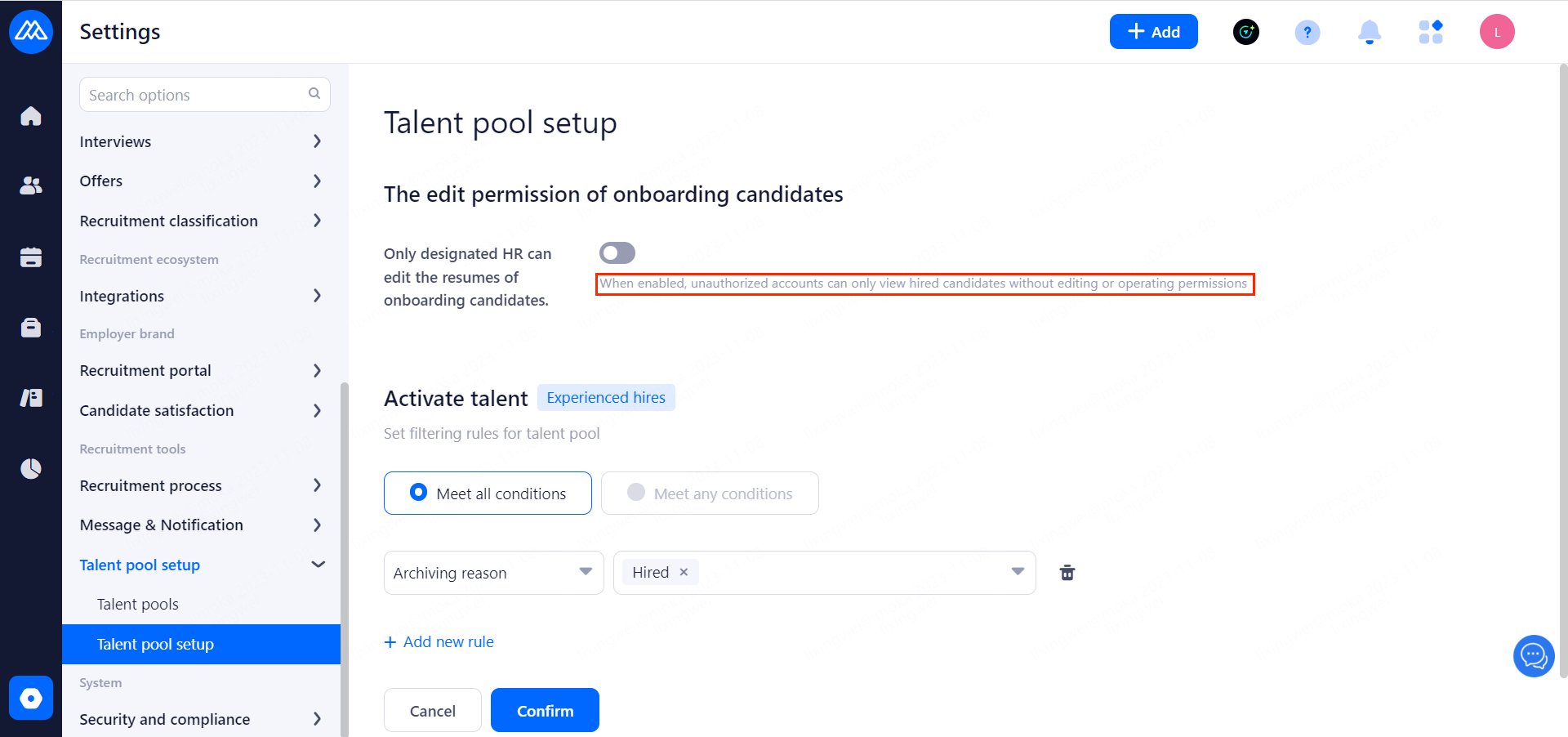 When enabled, unauthorized accounts can only view hired candidates without editing or operating permissions.