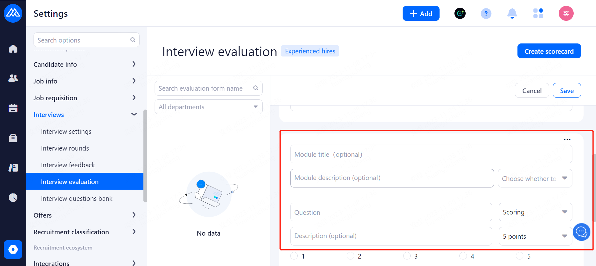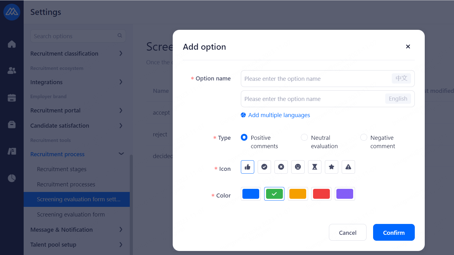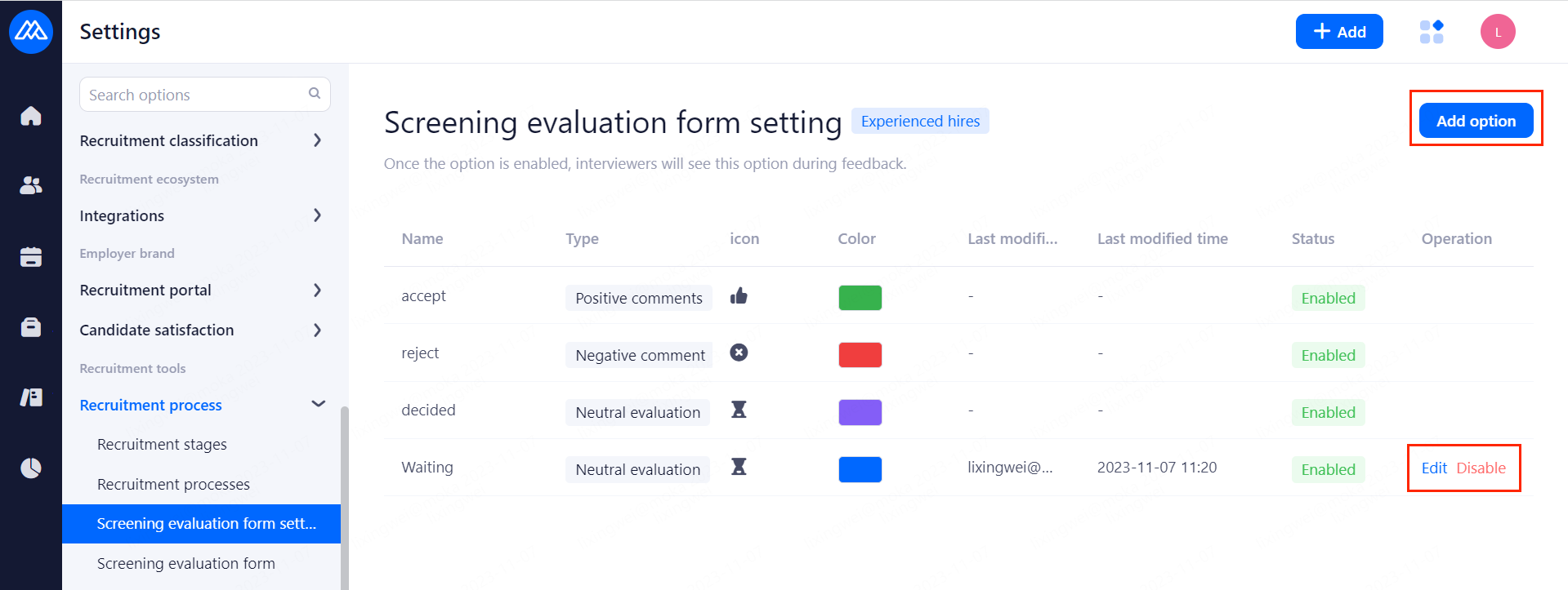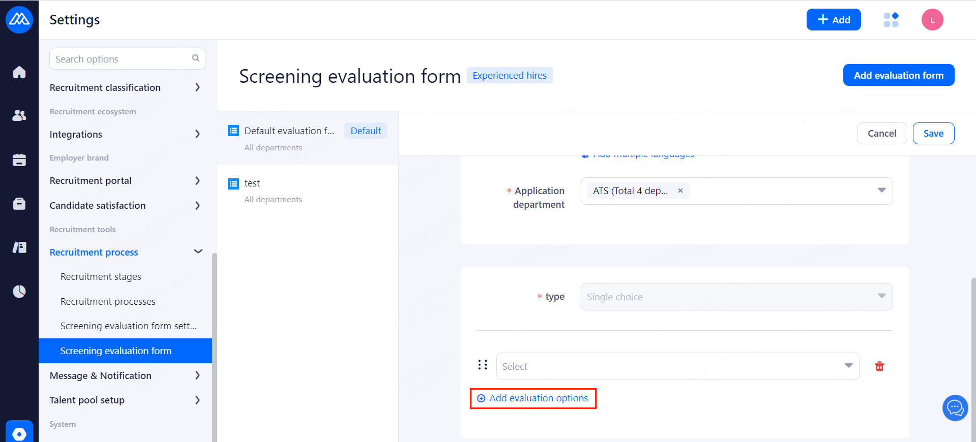 Set up Screening evaluation form for interviewers.