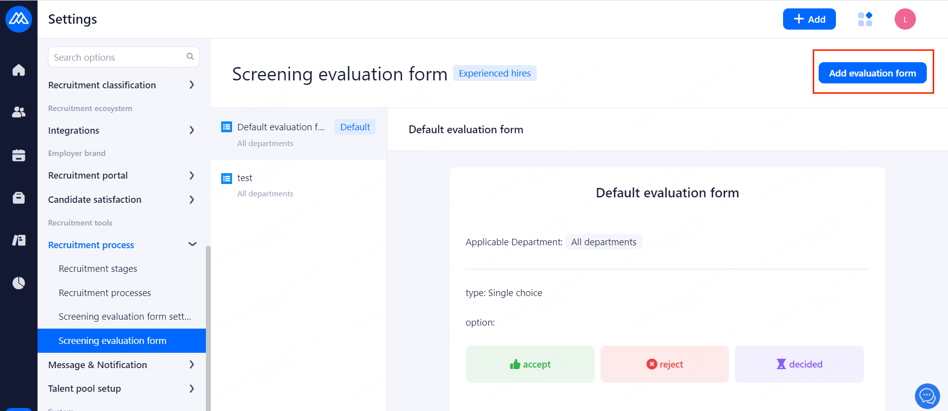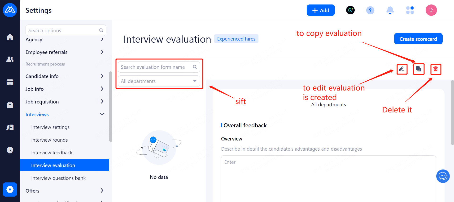 Senior manager: You can add candidates, view resumes, screen resumes, recommend resumes, arrange interviews, fill out and view interview evaluation.