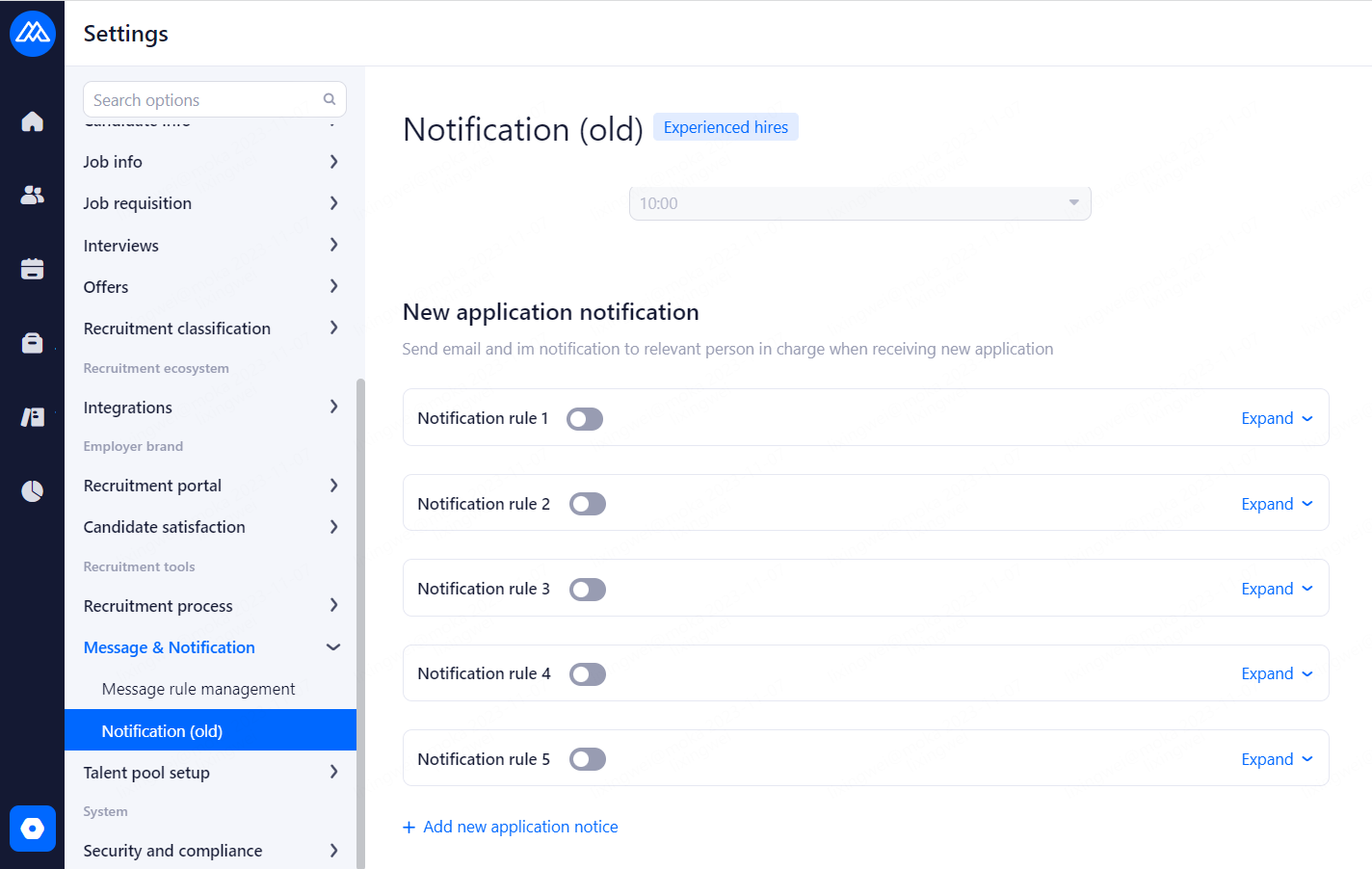 Summary notification time: Summarize the resumes received on the same day and notify the position holder at a specific time (optionally from 00:00 to 23:00 every day).
