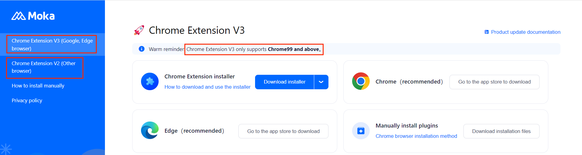 Chrome 99 and above can install V3