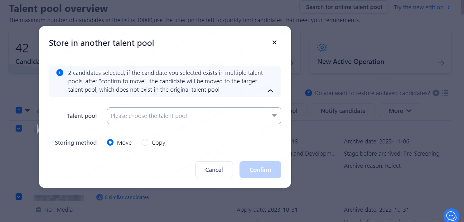 Create a new customized talent pool, you can choose to associate a parent pool or add a sub-pool directly.