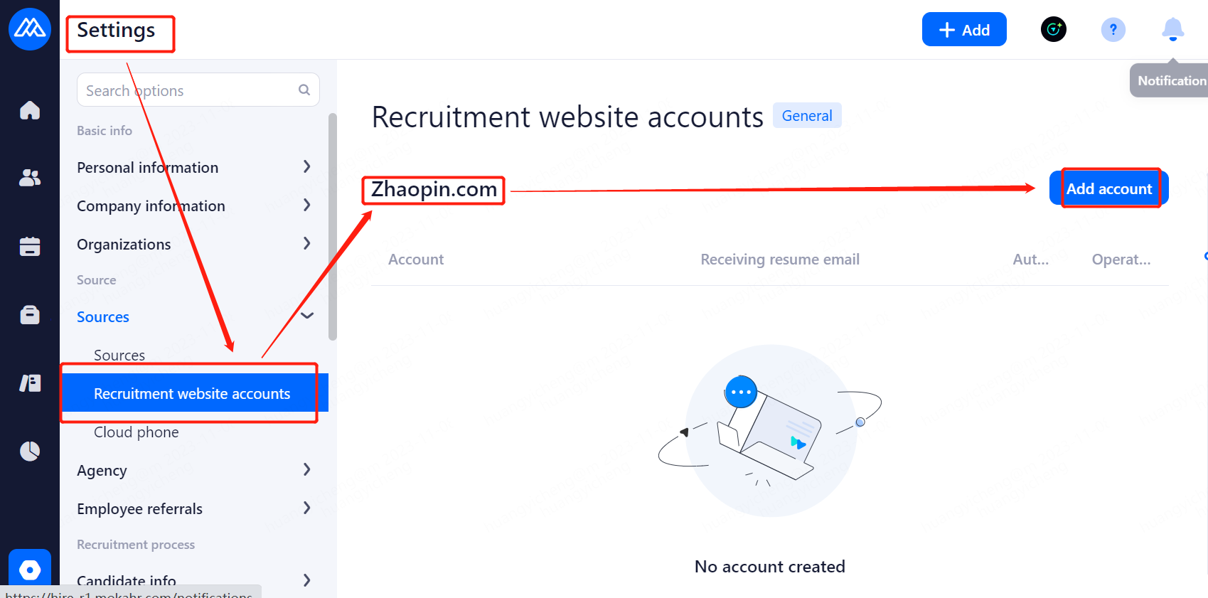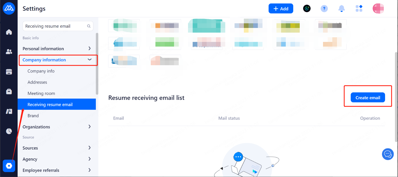 1.1.2.Bind the e-mail address for receiving resumes