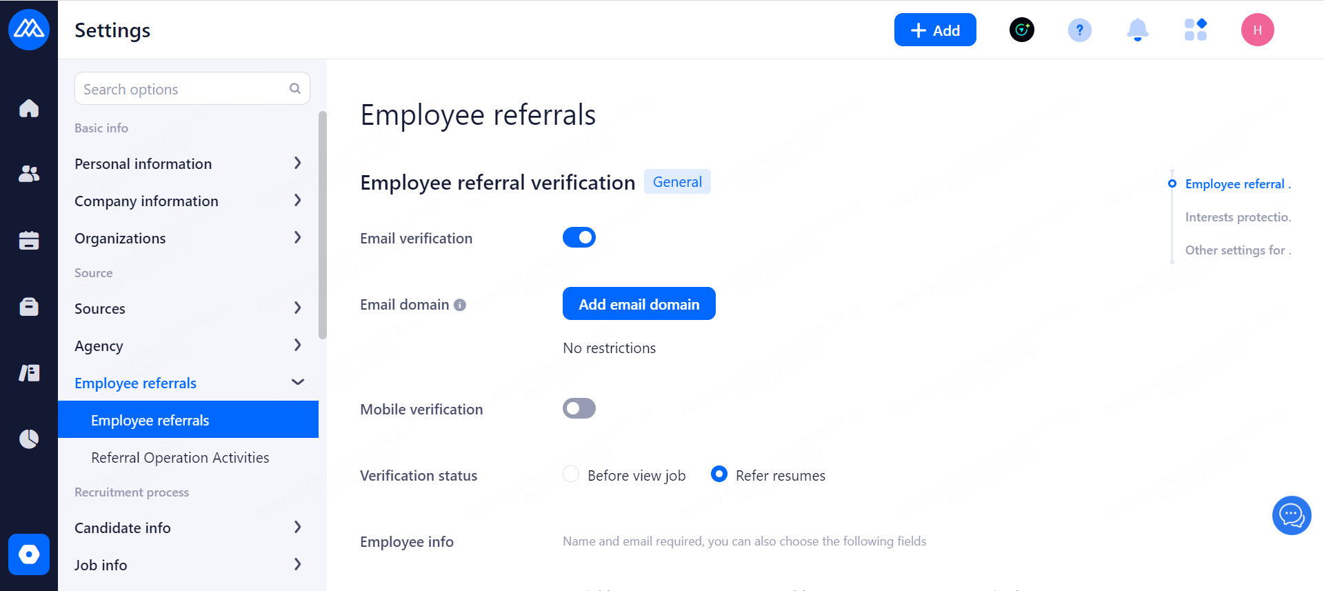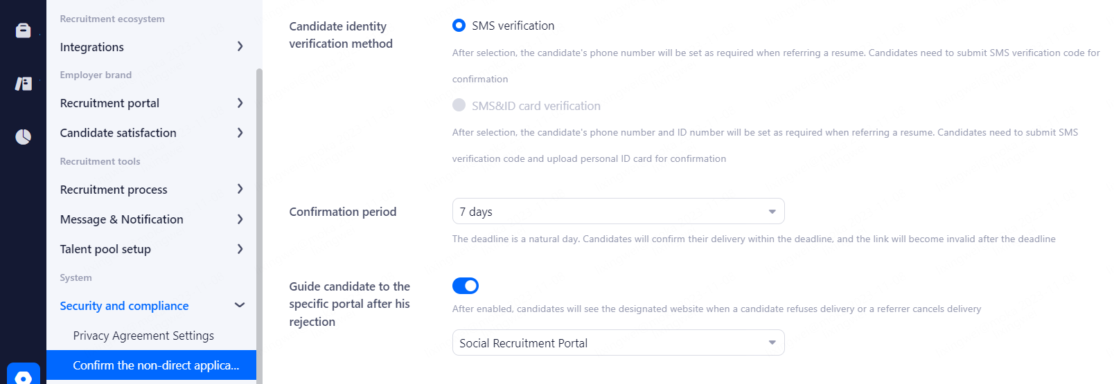 Candidate identity verification method: After selection, the candidate's phone number will be set as required when referring a resume. Candidates need to submit SMS verification code for confirmation