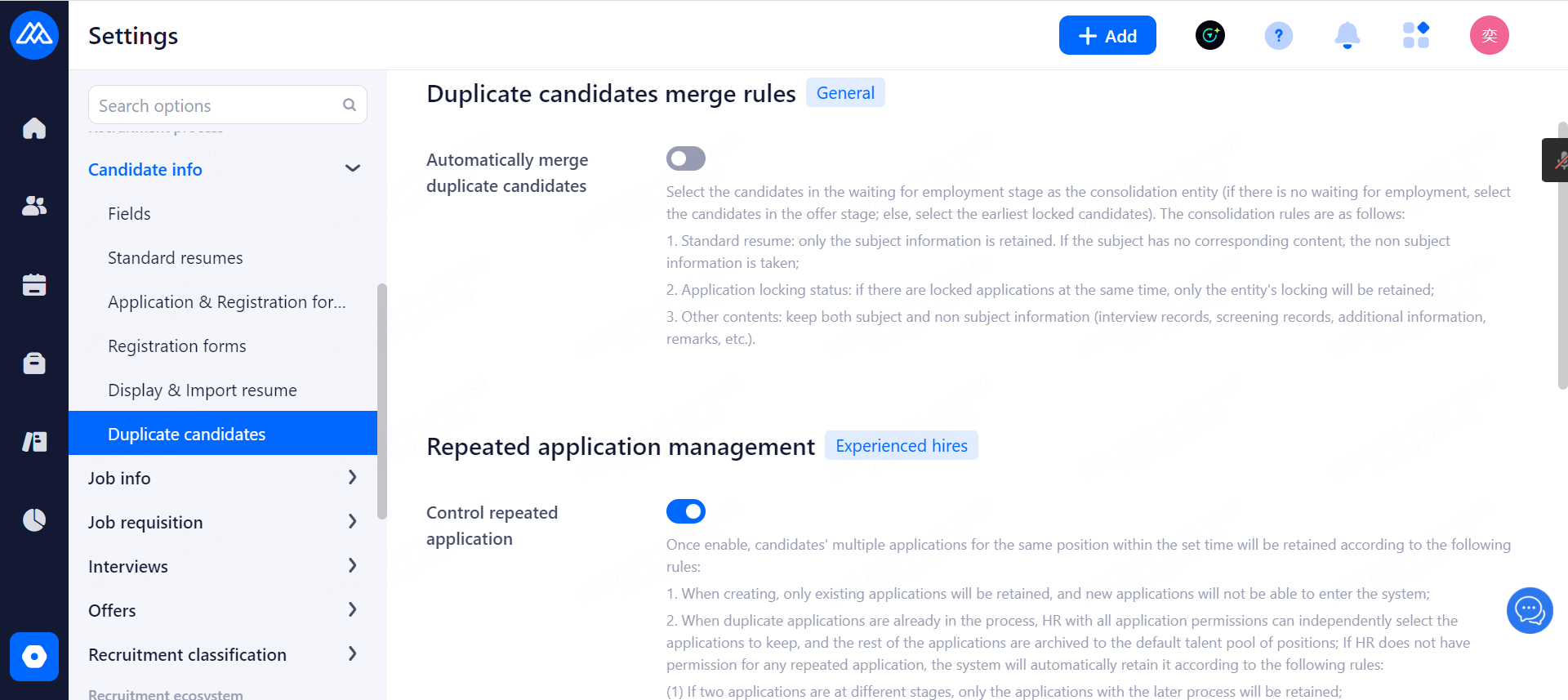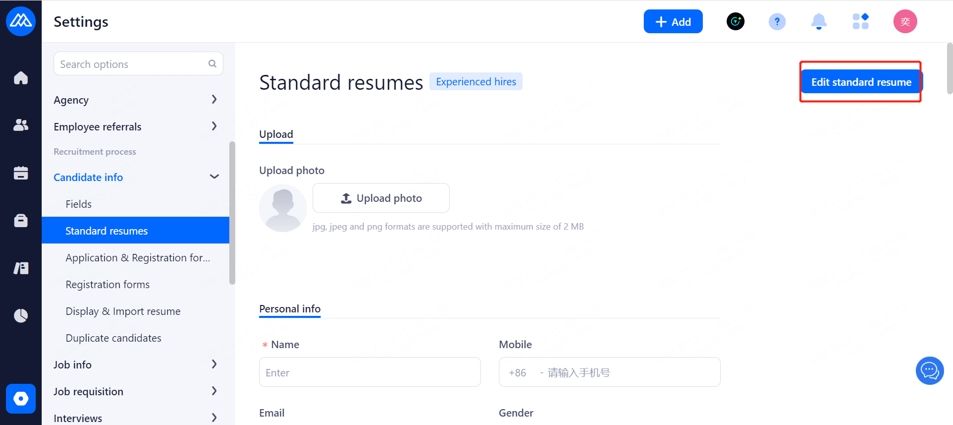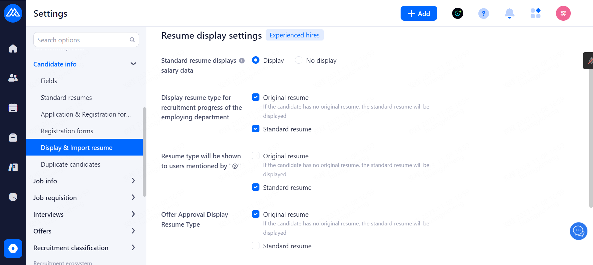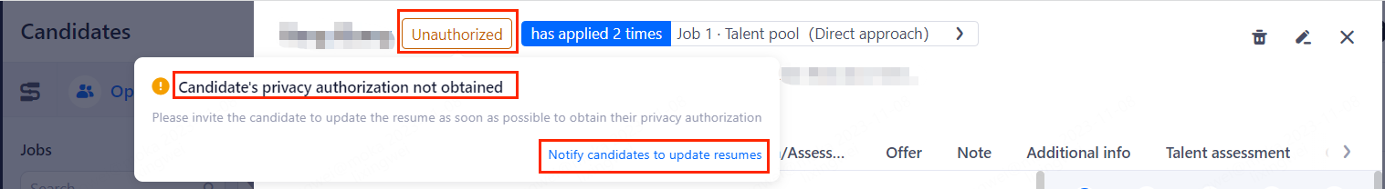 Mark unauthorized resumes: With this feature enabled, Mark unauthorised resumes in the details page and remind HR to obtain authorisation or delete the resume.