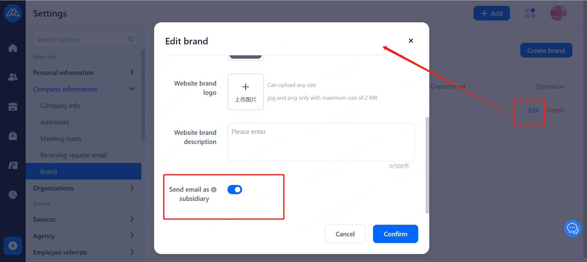 Moka Recruitment System supports unified management of company-related information, brand, address, email and other related content to ensure the unity of the company's external release of information.