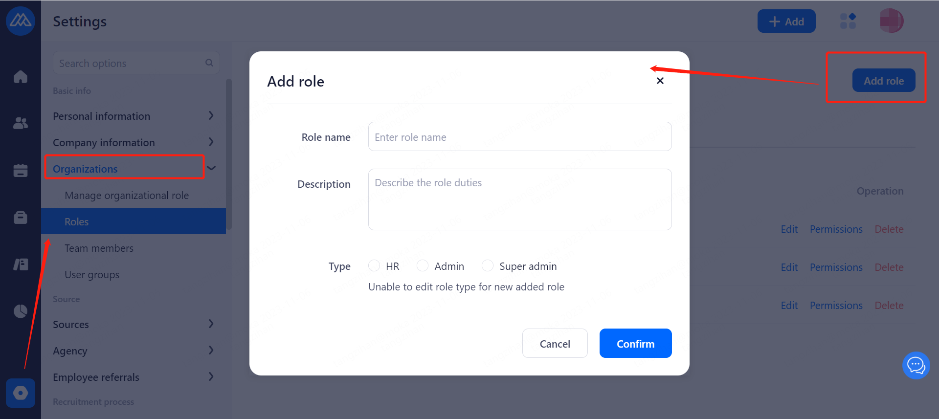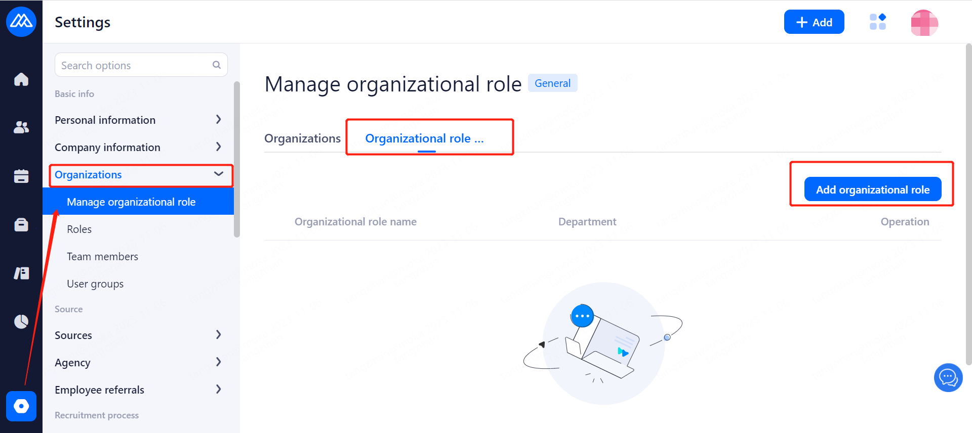 Organiazation role manageris used for HR to differentiate personnel in various departments or branches by position, add new position types and associate them to the corresponding departments.