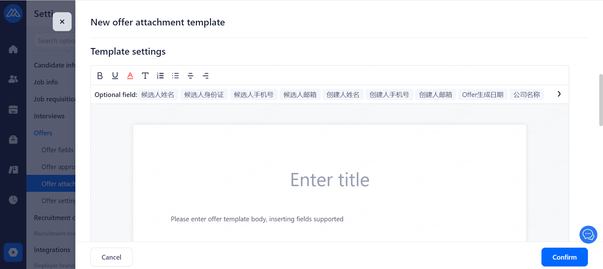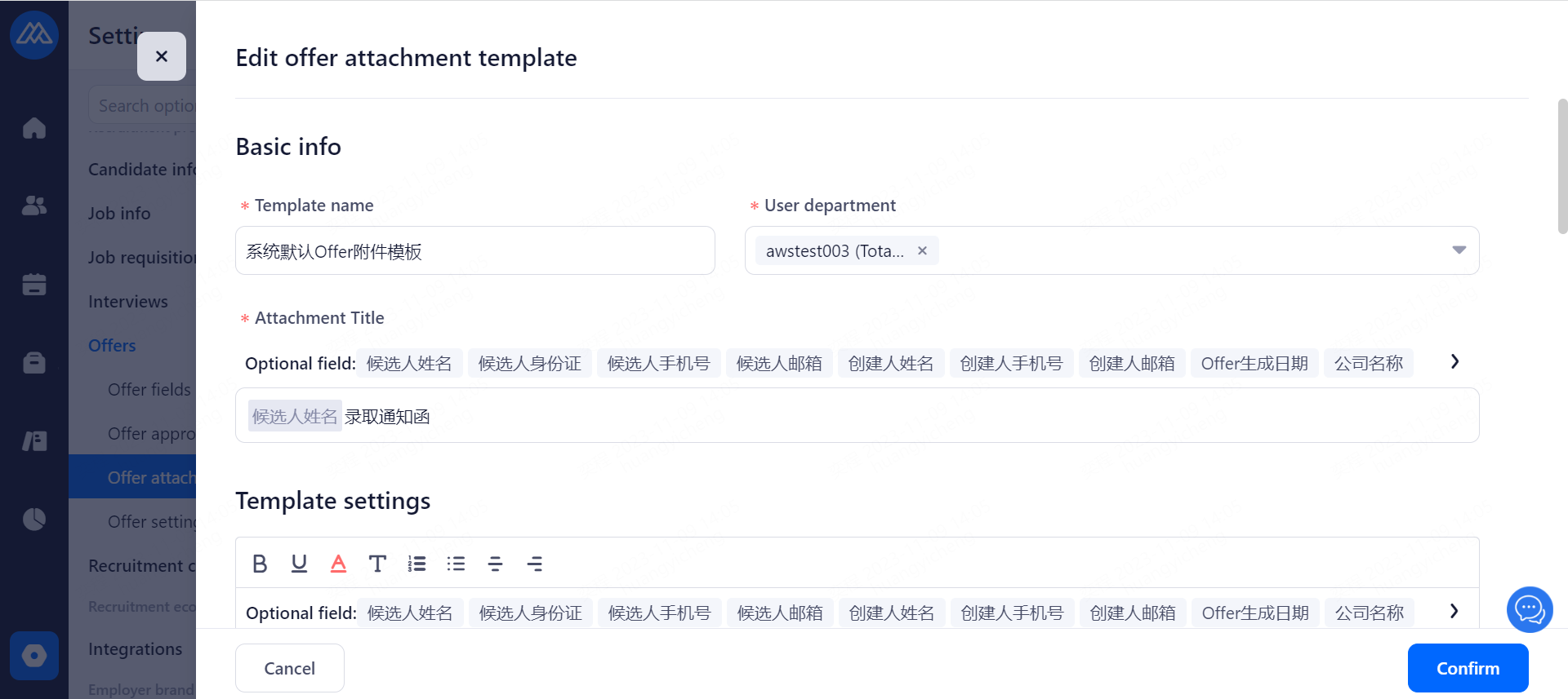 Offer template: Recruitment Classifieds>Message Template Management>Offer Template
