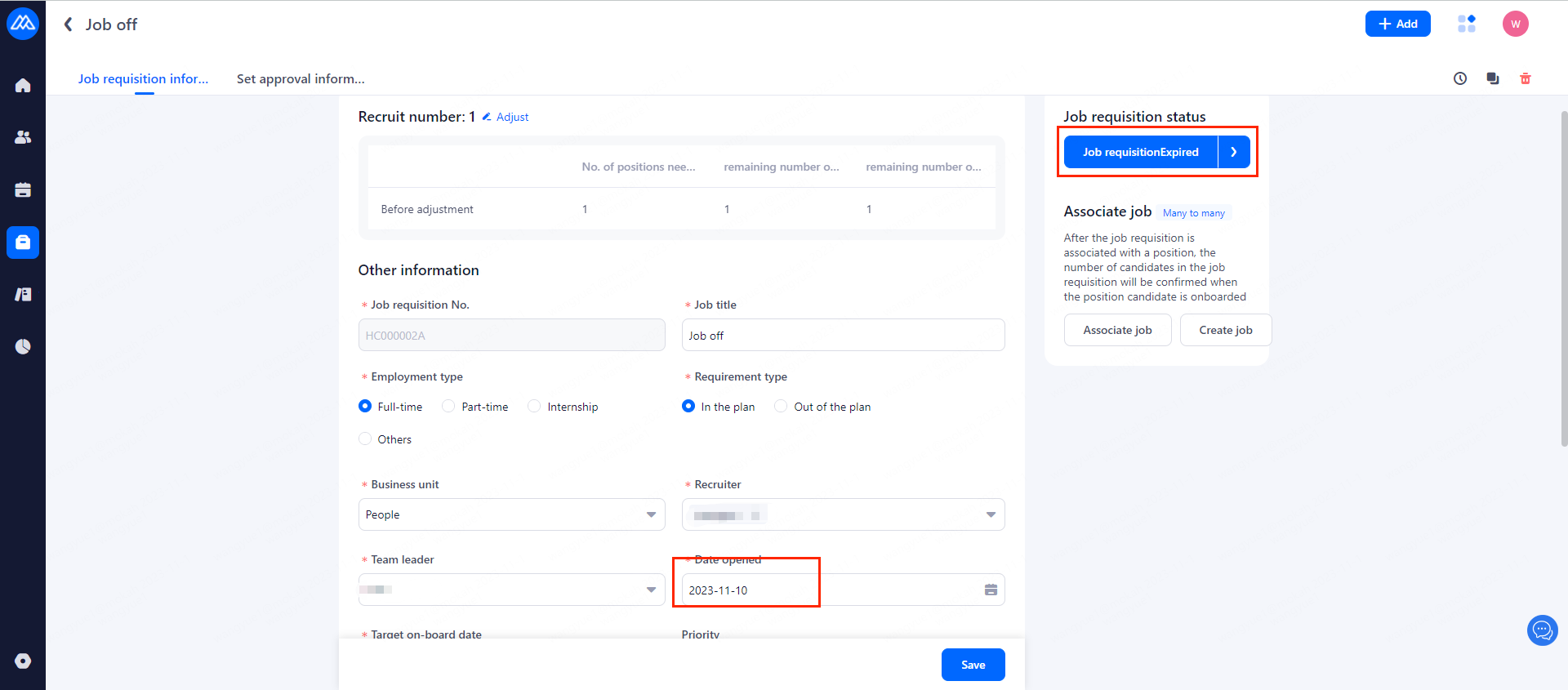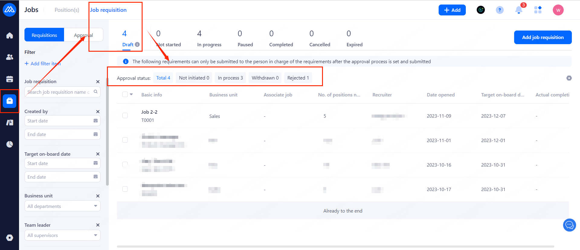 1. Job Requisition in draft