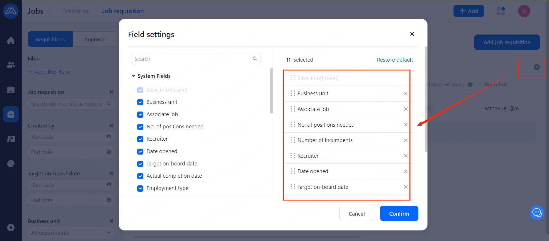 Note: Filter items of the field based on the [Job requisition field Association] settings], you can customize the field and choose to add screening items)