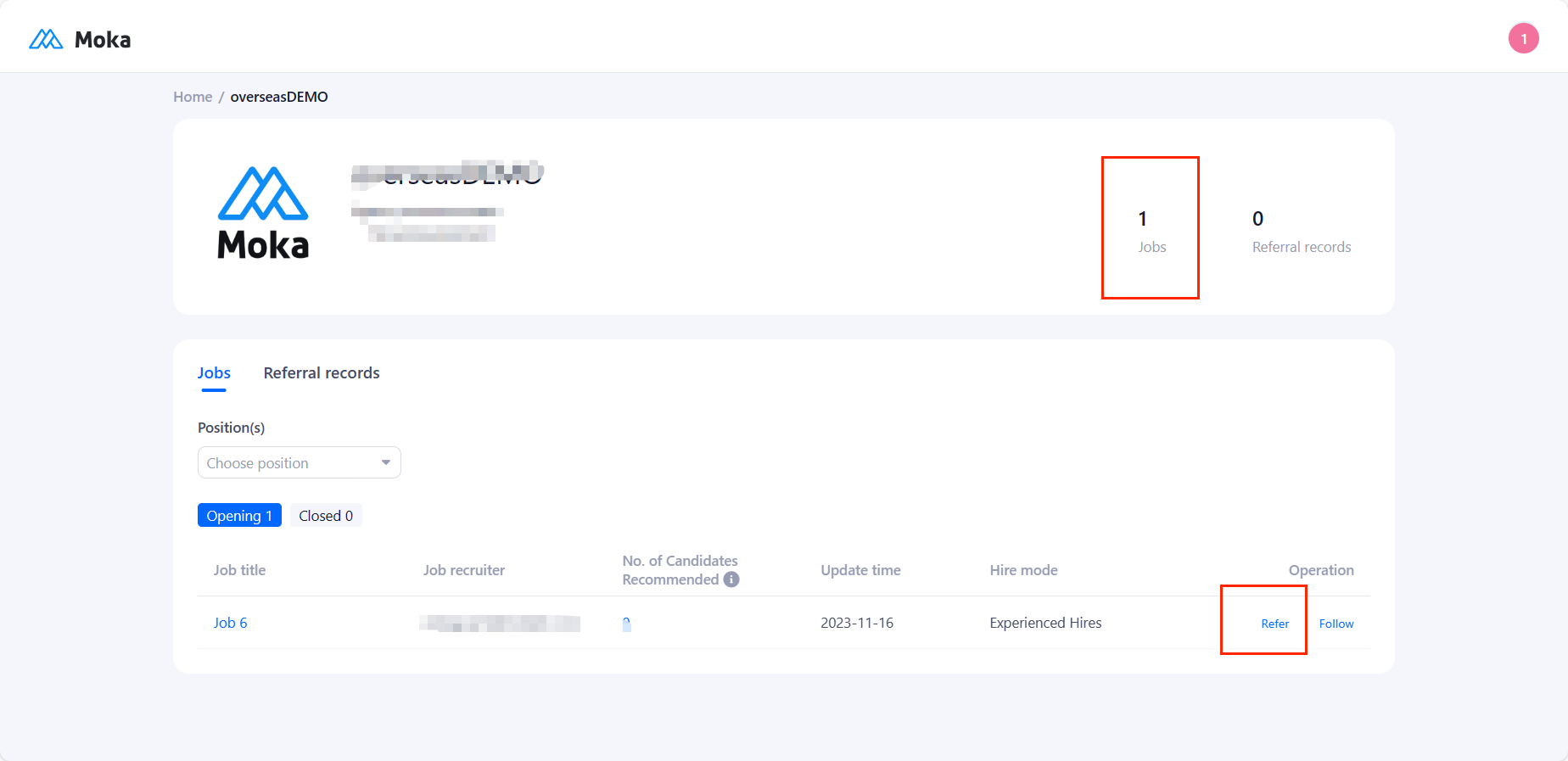 You can view the referral record in the recommended candidates and follow up on the candidate's status.
