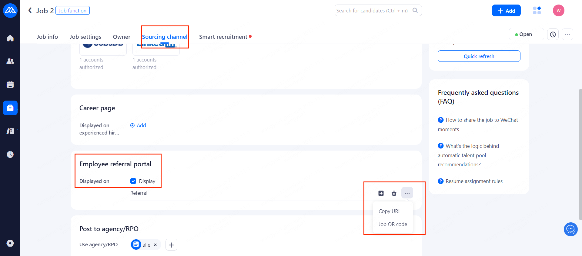 Enter the sourcing channel setting page of the position in job setting page or when creating a new position.