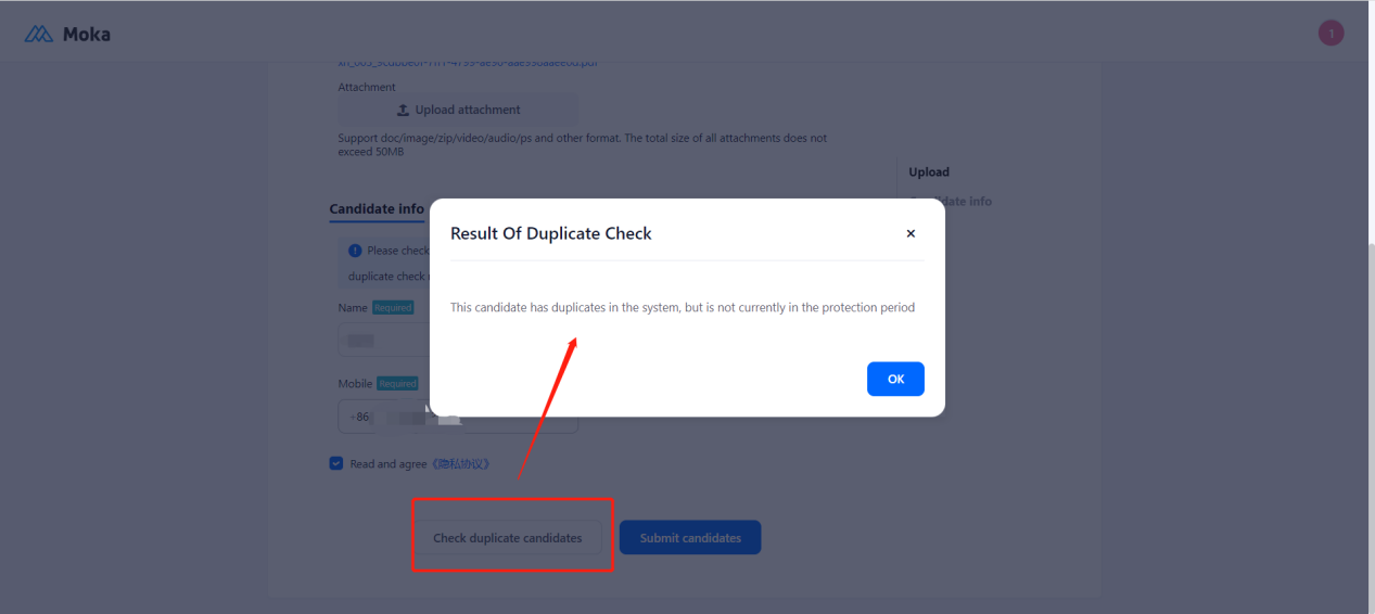 2. The result of duplicate check will be displayed.