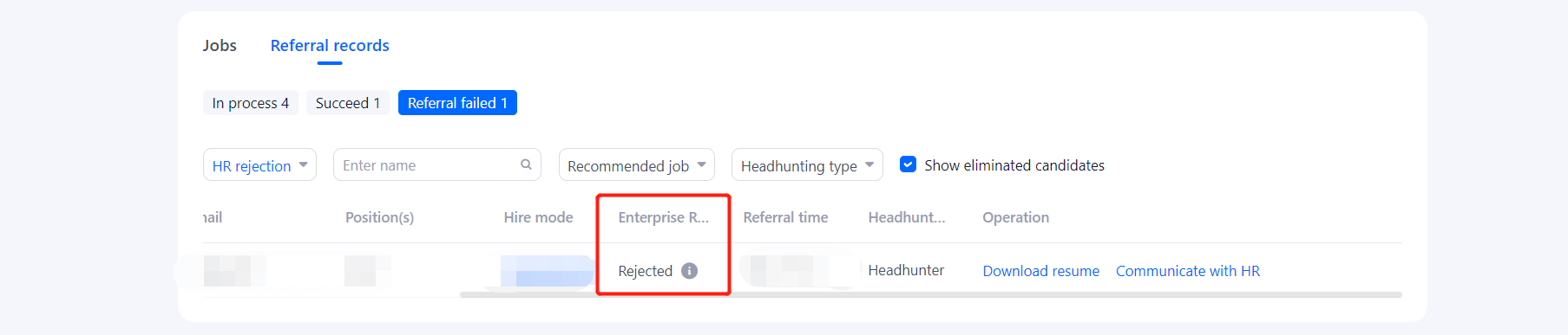 Headhunter self-check function and why the status of headhunter recommended resume appears to be refused.