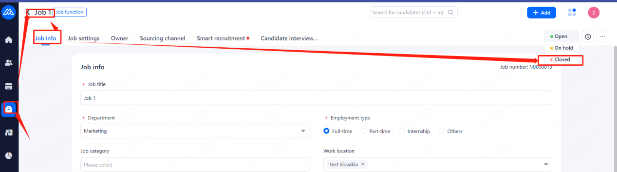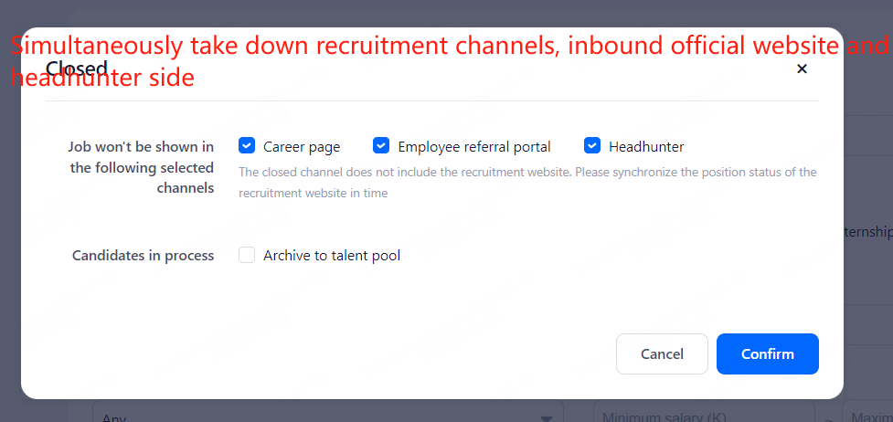 4.After clicking the "Confirm" button, a prompt will appear in the upper right corner of the system to indicate that the recruitment status has been updated successfully.