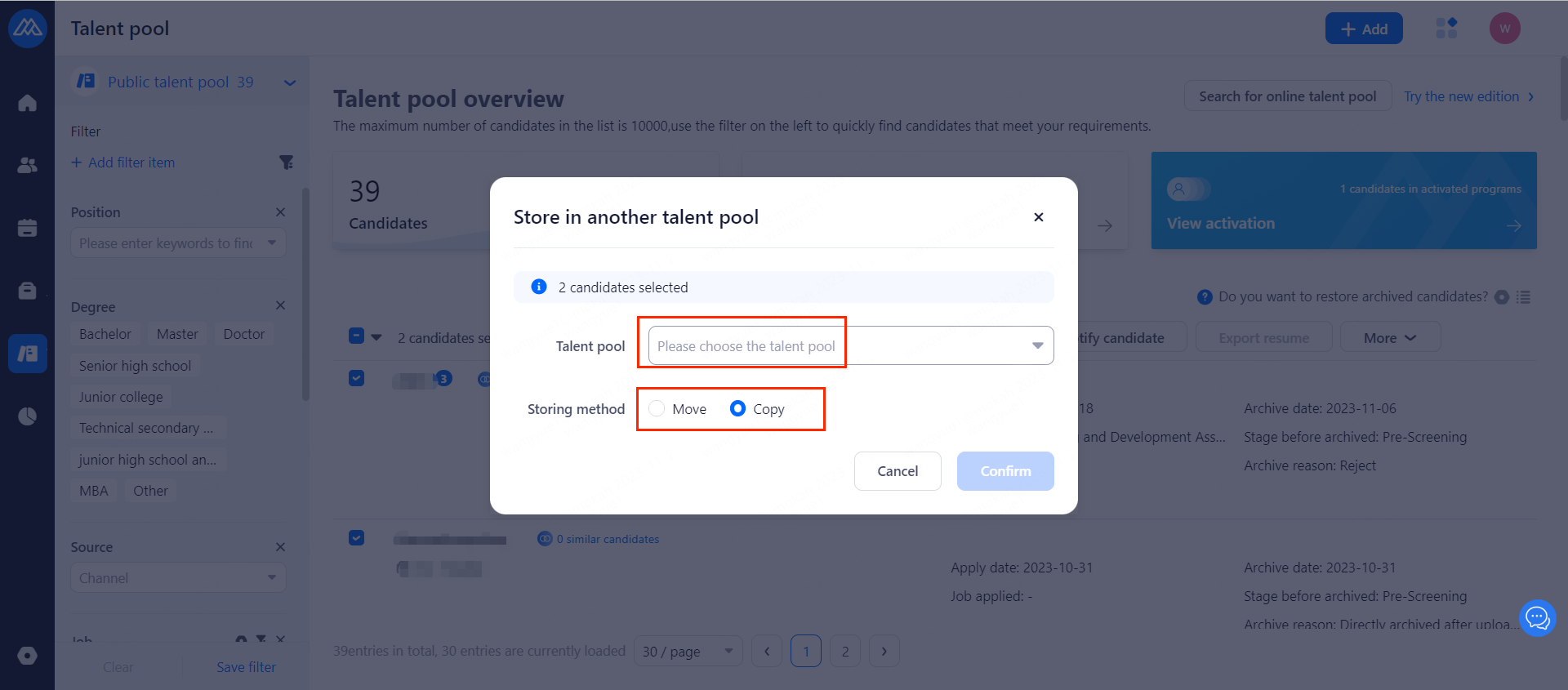 2. Select the corresponding talent pool