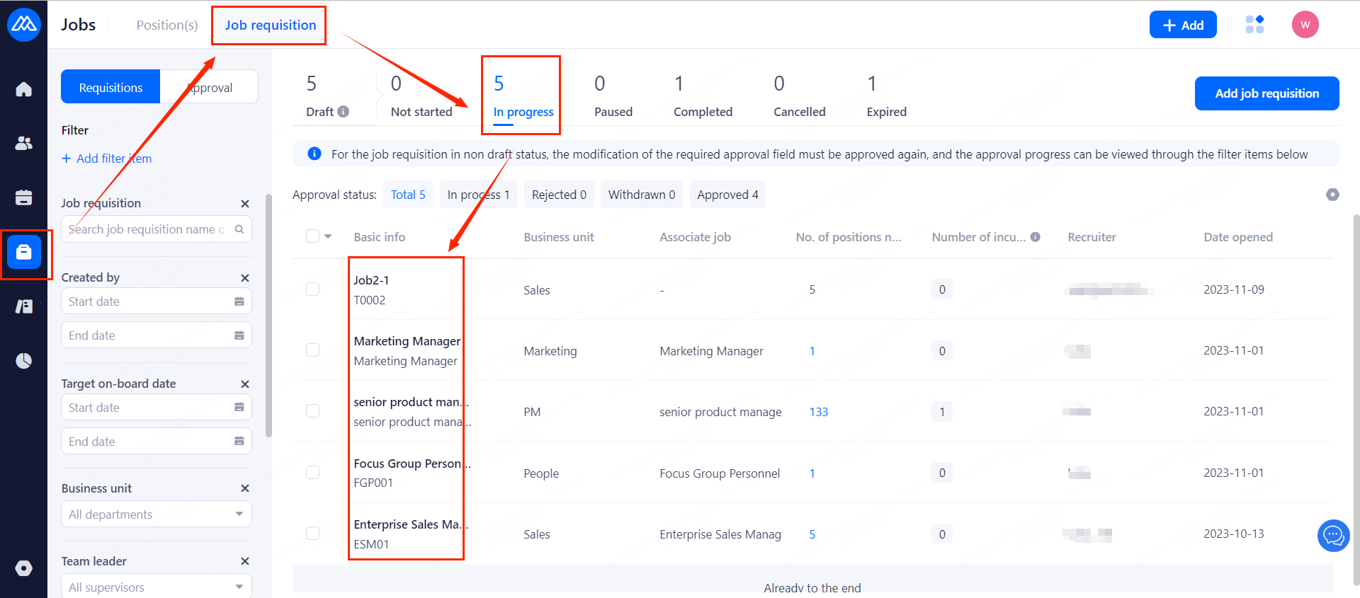 1. Click [Jobs] on the left bar, and click [Job Requisitions] above.