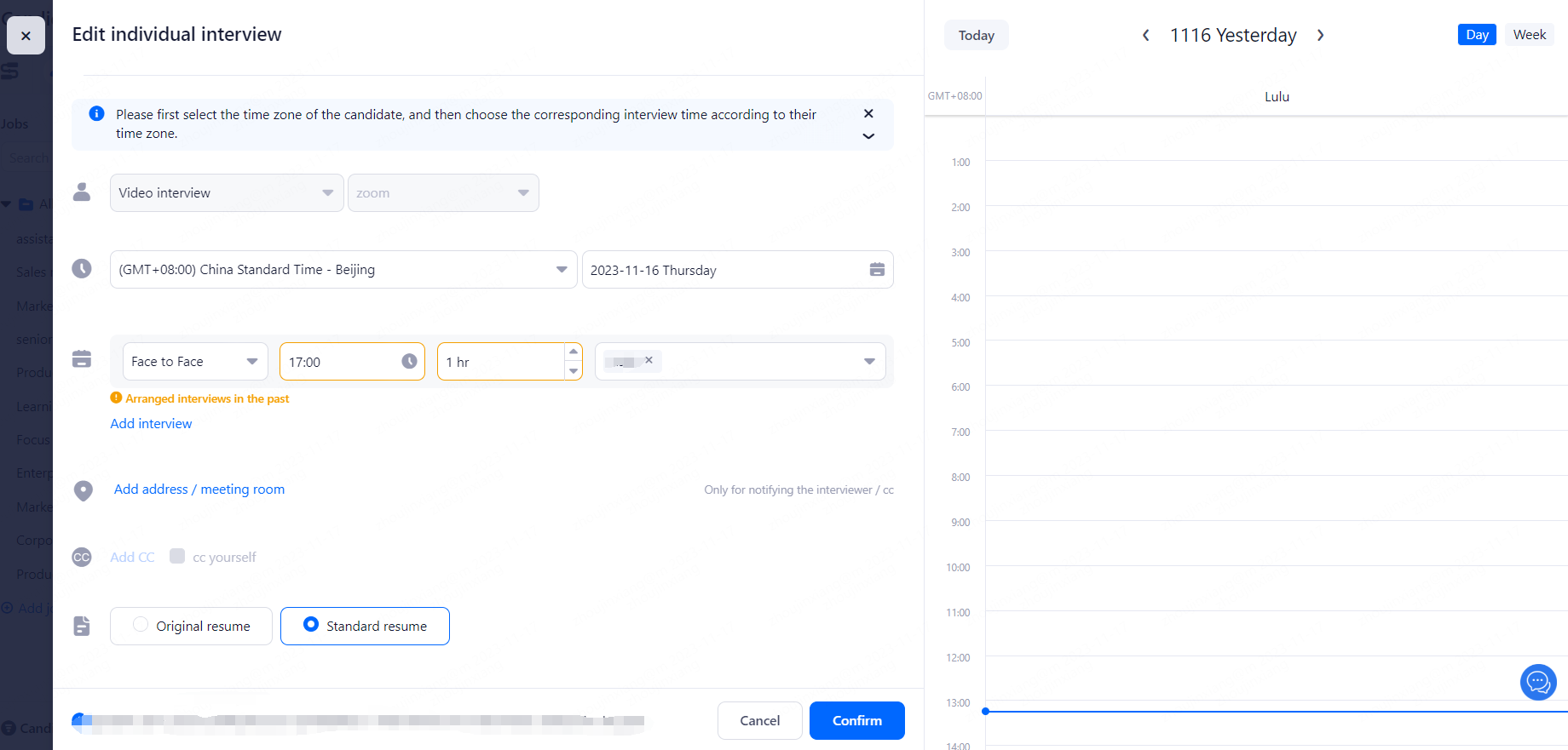 2、Please adjust the corresponding content in the pop-up page of interview modification according to the need, and then click the "Confirm" button for re-notification.