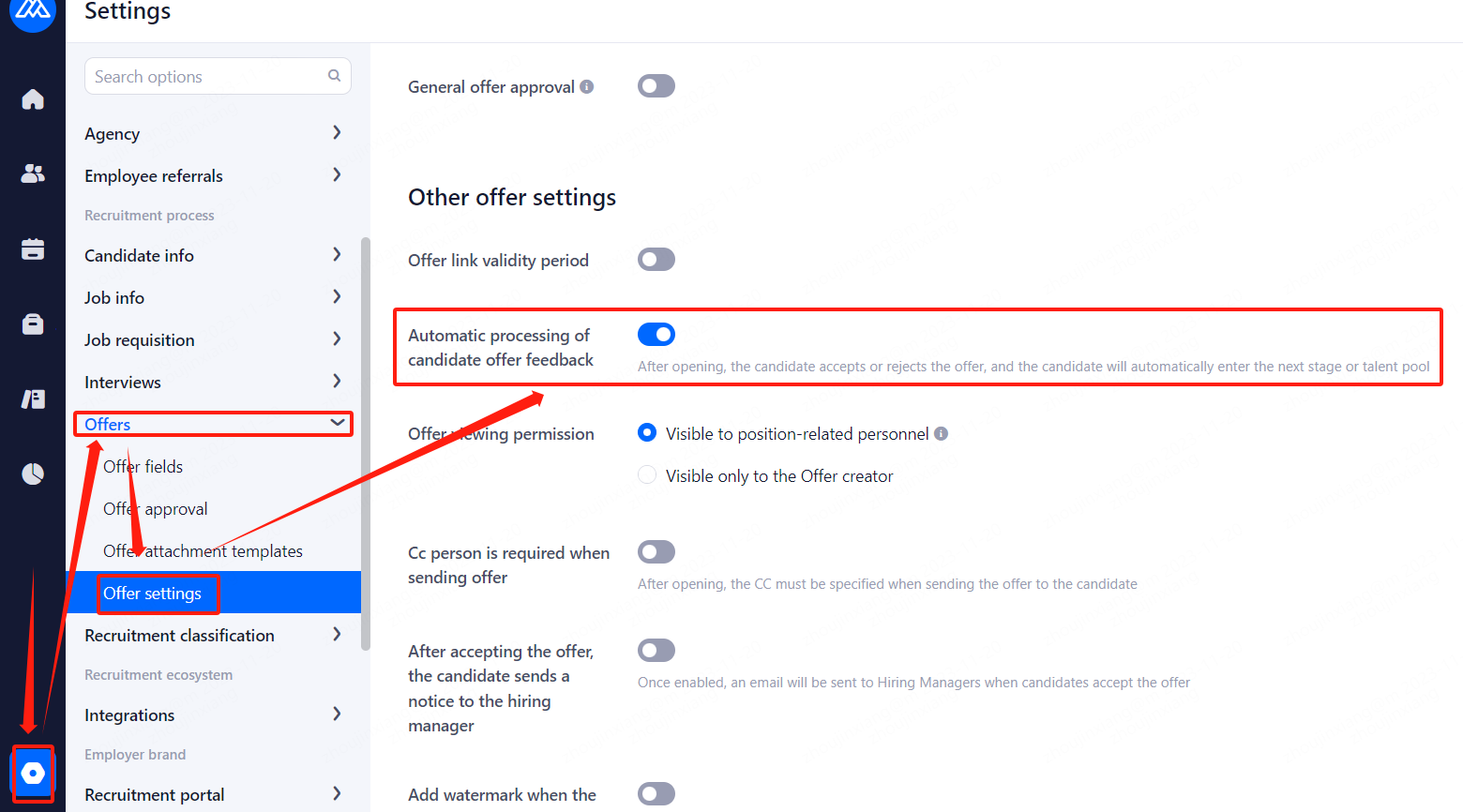 2、the right side appears within the option please click to open the "Automatic processing of candidate offer feedback".